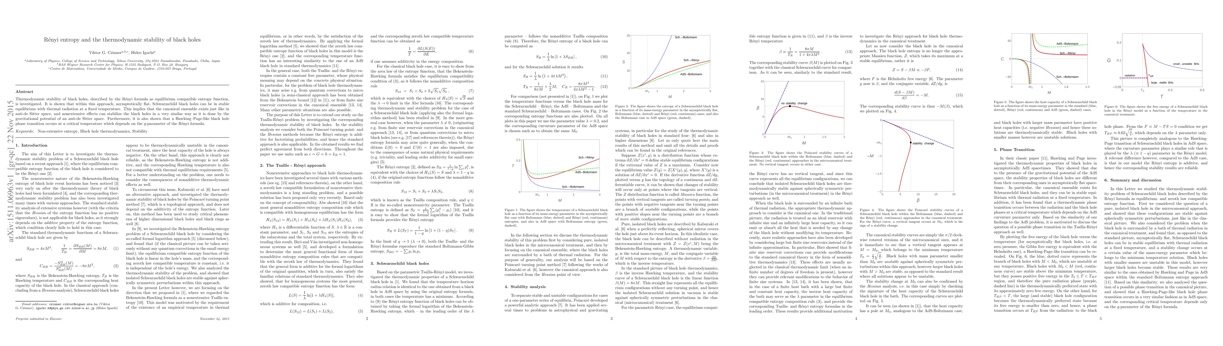 Thermodynamic stability of black holes, described by the R\'enyi formula as equilibrium compatible entropy function, is investigated. It is shown that within this approach, asymptotically flat, Schwarzschild black holes can be in stable equilibrium with thermal radiation at a fixed temperature. This implies that the canonical ensemble exists just like in anti-de Sitter space, and nonextensive effects can stabilize the black holes in a very similar way as it is done by the gravitational potential of an anti-de Sitter space. Furthermore, it is also shown that a Hawking-Page-like black hole phase transition occurs at a critical temperature which depends on the $q$-parameter of the R\'enyi formula.
