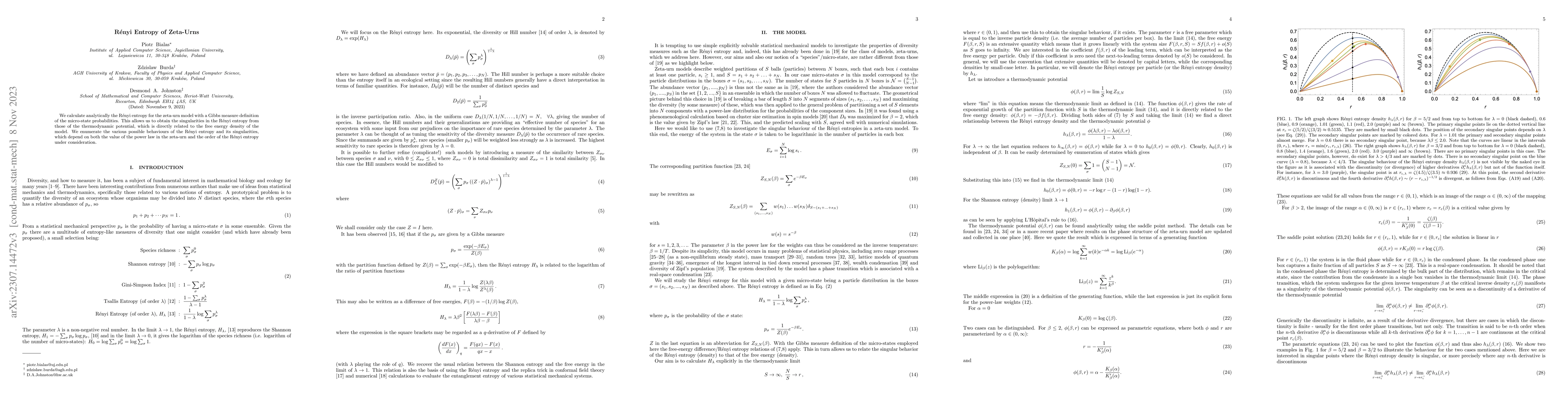 This paper analytically computes Renyi entropy for the zeta-urn model, revealing its singularities linked to the thermodynamic potential. It explores different behaviors of the Renyi entropy based on the power law and entropy order.