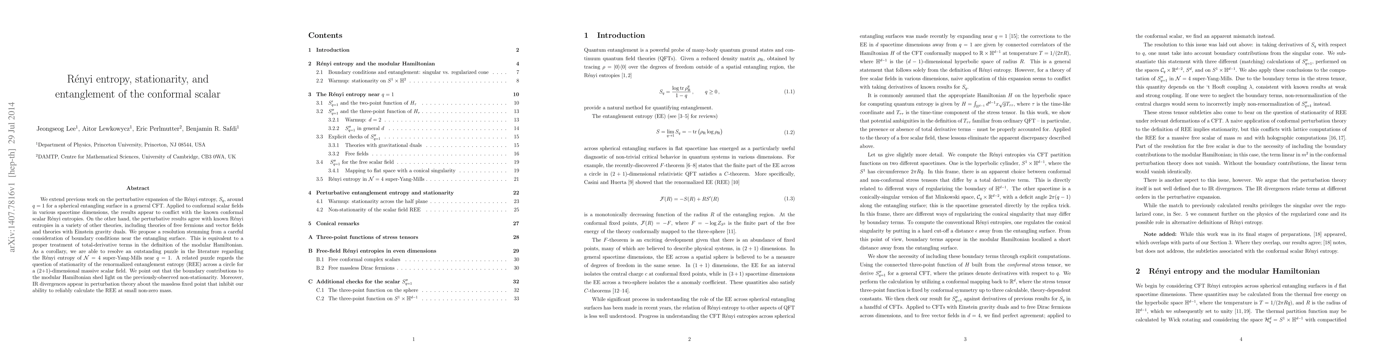 We extend previous work on the perturbative expansion of the Renyi entropy, $S_q$, around $q=1$ for a spherical entangling surface in a general CFT. Applied to conformal scalar fields in various spacetime dimensions, the results appear to conflict with the known conformal scalar Renyi entropies. On the other hand, the perturbative results agree with known Renyi entropies in a variety of other theories, including theories of free fermions and vector fields and theories with Einstein gravity duals. We propose a resolution stemming from a careful consideration of boundary conditions near the entangling surface. This is equivalent to a proper treatment of total-derivative terms in the definition of the modular Hamiltonian. As a corollary, we are able to resolve an outstanding puzzle in the literature regarding the Renyi entropy of ${\cal N}=4$ super-Yang-Mills near $q=1$. A related puzzle regards the question of stationarity of the renormalized entanglement entropy (REE) across a circle for a (2+1)-dimensional massive scalar field. We point out that the boundary contributions to the modular Hamiltonian shed light on the previously-observed non-stationarity. Moreover, IR divergences appear in perturbation theory about the massless fixed point that inhibit our ability to reliably calculate the REE at small non-zero mass.