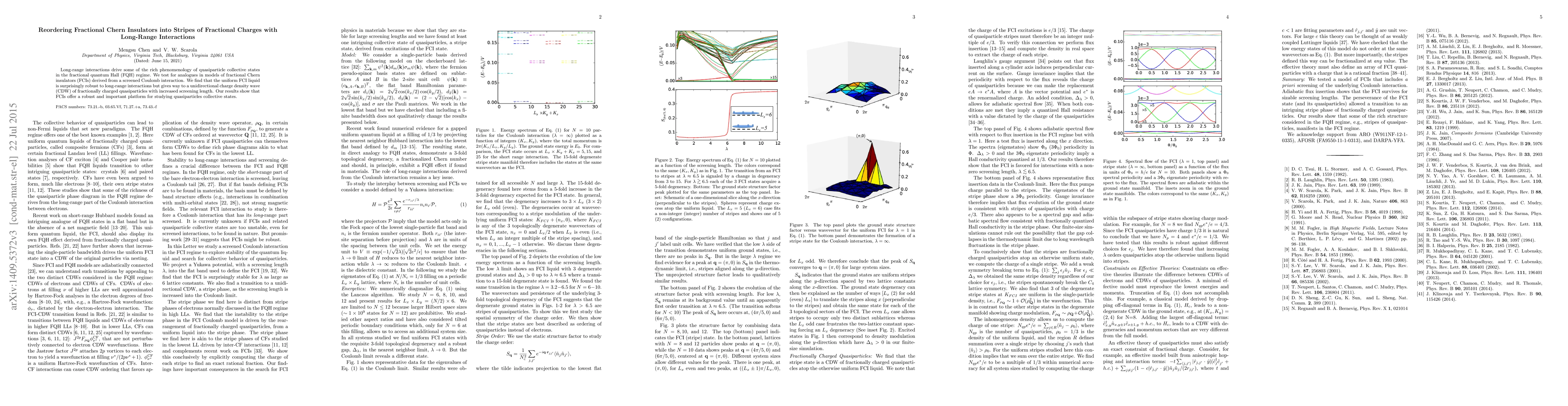 This research investigates the effects of long-range interactions on fractional Chern insulators (FCIs), revealing that while the uniform FCI state remains robust, increased screening leads to a unidirectional charge density wave of fractionally charged quasiparticles. FCIs are identified as a valuable platform for studying collective quasiparticle states.