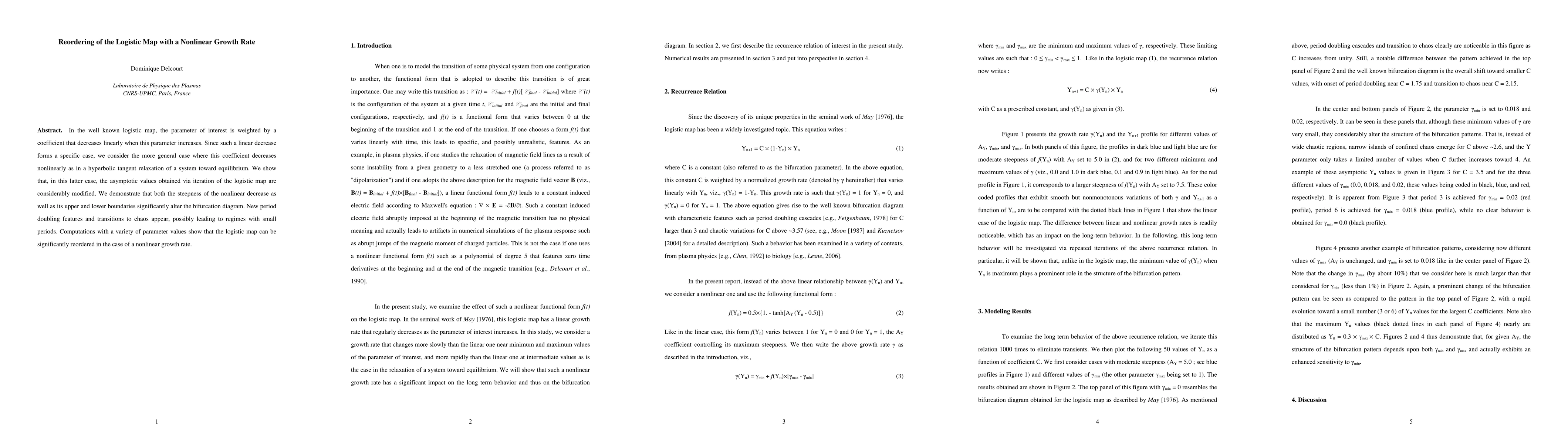 In the well known logistic map, the parameter of interest is weighted by a coefficient that decreases linearly when this parameter increases. Since such a linear decrease forms a specific case, we consider the more general case where this coefficient decreases nonlinearly as in a hyperbolic tangent relaxation of a system toward equilibrium. We show that, in this latter case, the asymptotic values obtained via iteration of the logistic map are considerably modified. We demonstrate that both the steepness of the nonlinear decrease as well as its upper and lower boundaries significantly alter the bifurcation diagram. New period doubling features and transitions to chaos appear, possibly leading to regimes with small periods. Computations with a variety of parameter values show that the logistic map can be significantly reordered in the case of a nonlinear growth rate.