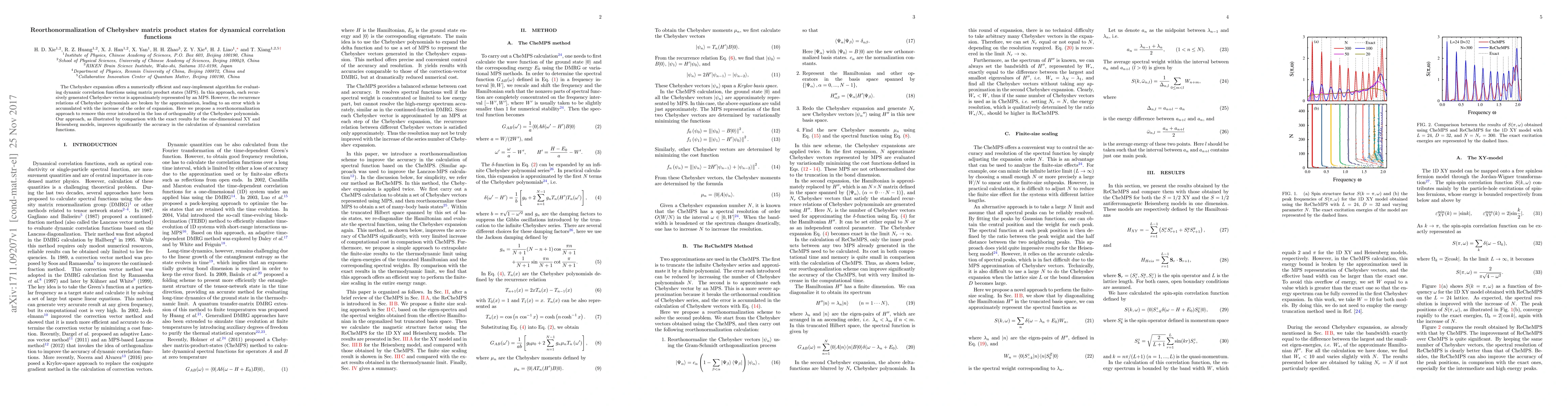 This paper proposes a reorthonormalization method to correct the loss of orthogonality in Chebyshev expansions used for evaluating dynamic correlation functions with matrix product states, significantly improving accuracy for models like the XY and Heisenberg. The approach mitigates errors accumulated from the approximation of Chebyshev vectors by MPS.