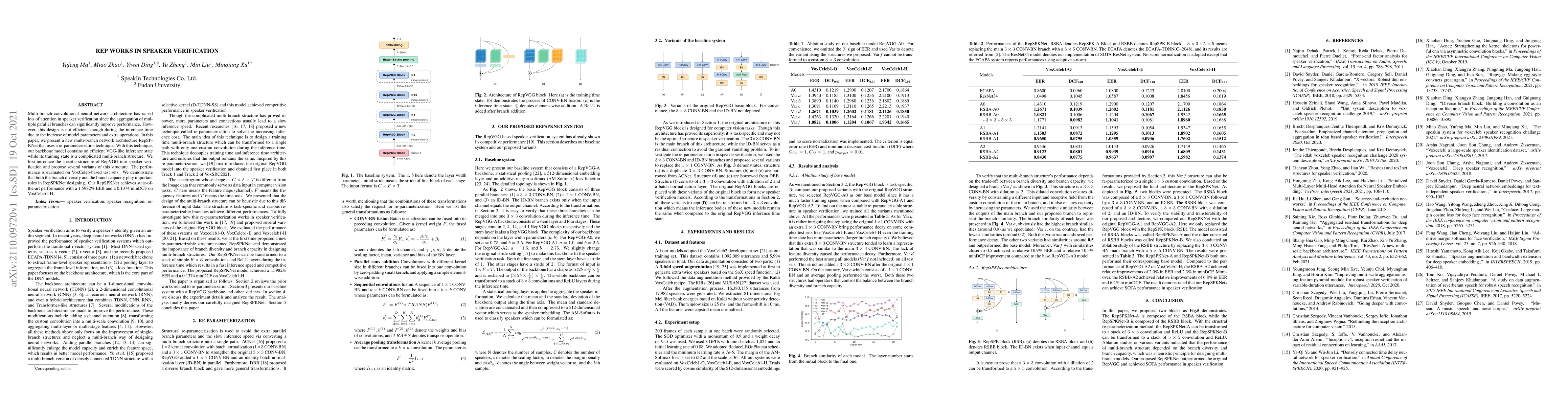 Multi-branch convolutional neural network architecture has raised lots of attention in speaker verification since the aggregation of multiple parallel branches can significantly improve performance. However, this design is not efficient enough during the inference time due to the increase of model parameters and extra operations. In this paper, we present a new multi-branch network architecture RepSPKNet that uses a re-parameterization technique. With this technique, our backbone model contains an efficient VGG-like inference state while its training state is a complicated multi-branch structure. We first introduce the specific structure of RepVGG into speaker verification and propose several variants of this structure. The performance is evaluated on VoxCeleb-based test sets. We demonstrate that both the branch diversity and the branch capacity play important roles in RepSPKNet designing. Our RepSPKNet achieves state-of-the-art performance with a 1.5982% EER and a 0.1374 minDCF on VoxCeleb1-H.