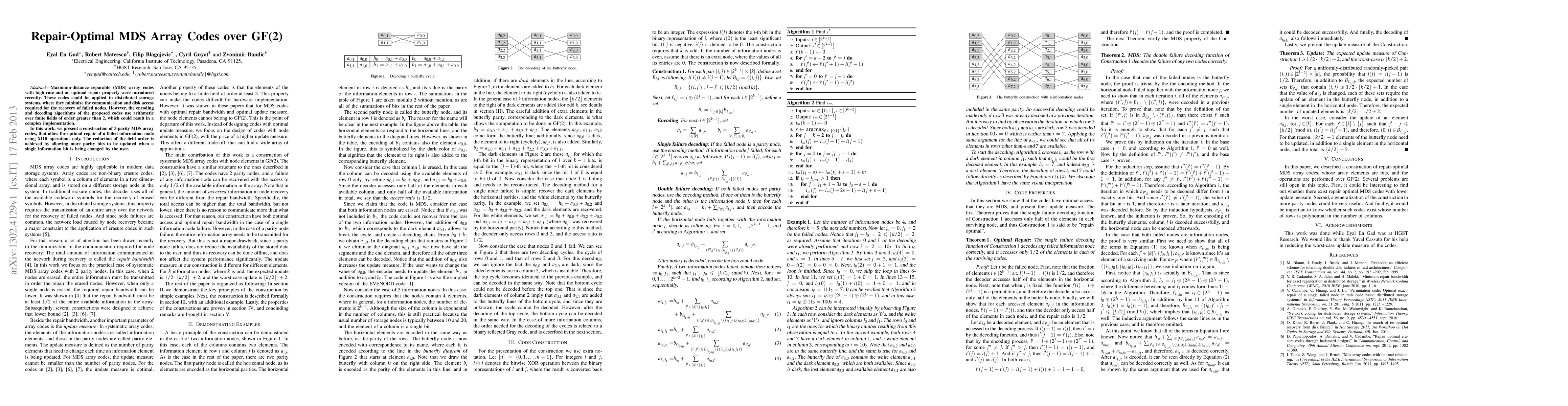 This paper proposes a construction of 2-parity maximum-distance separable (MDS) array codes that enable optimal repair using only XOR operations, simplifying implementation compared to previous methods that use higher-order finite fields. This approach enhances the repair efficiency in distributed storage systems by minimizing communication and disk access for failed node recovery.