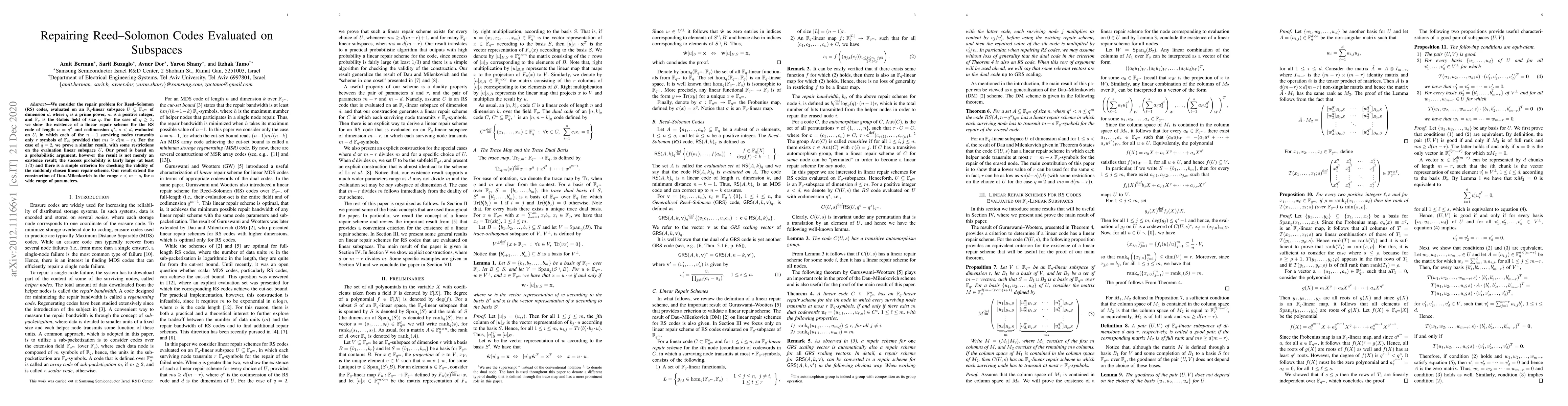 A systematic approach to Reed-Solomon codes was used to analyze repair schemes.