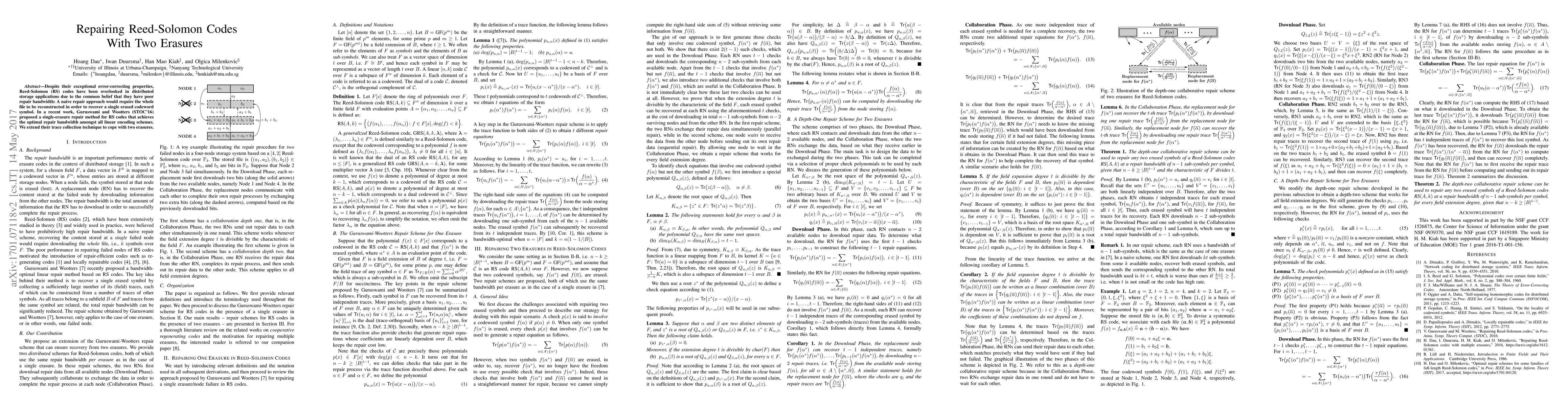 Despite their exceptional error-correcting properties, Reed-Solomon (RS) codes have been overlooked in distributed storage applications due to the common belief that they have poor repair bandwidth: A naive repair approach would require the whole file to be reconstructed in order to recover a single erased codeword symbol. In a recent work, Guruswami and Wootters (STOC'16) proposed a single-erasure repair method for RS codes that achieves the optimal repair bandwidth amongst all linear encoding schemes. We extend their trace collection technique to cope with two erasures.