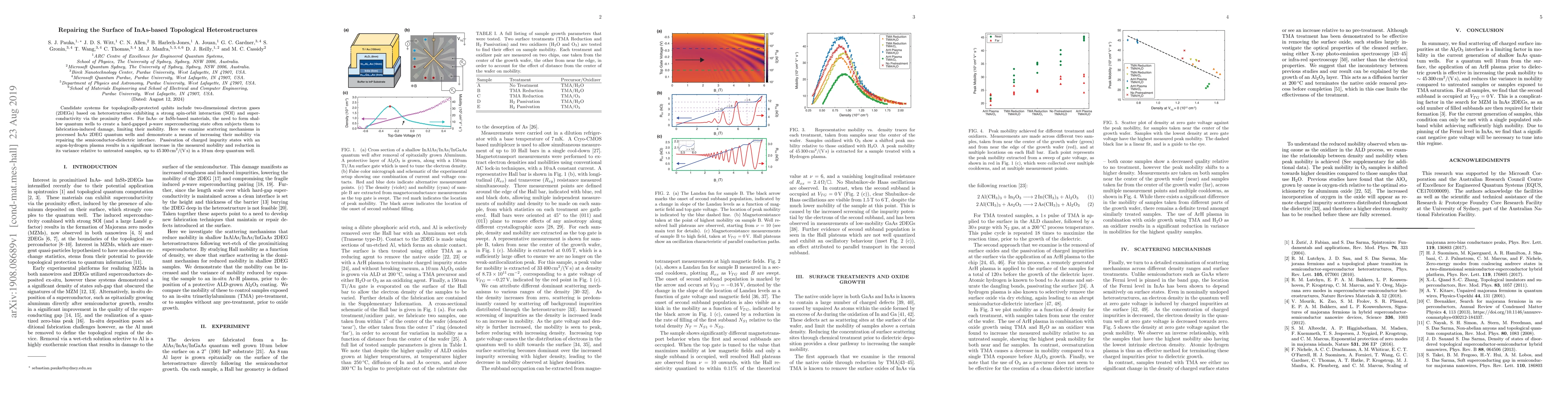 Candidate systems for topologically-protected qubits include two-dimensional electron gases (2DEGs) based on heterostructures exhibiting a strong spin-orbit interaction (SOI) and superconductivity via the proximity effect. For InAs- or InSb-based materials, the need to form shallow quantum wells to create a hard-gapped $p$-wave superconducting state often subjects them to fabrication-induced damage, limiting their mobility. Here we examine scattering mechanisms in processed InAs 2DEG quantum wells and demonstrate a means of increasing their mobility via repairing the semiconductor-dielectric interface. Passivation of charged impurity states with an argon-hydrogen plasma results in a significant increase in the measured mobility and reduction in its variance relative to untreated samples, up to 45300 cm$^2$/(V s) in a 10 nm deep quantum well.