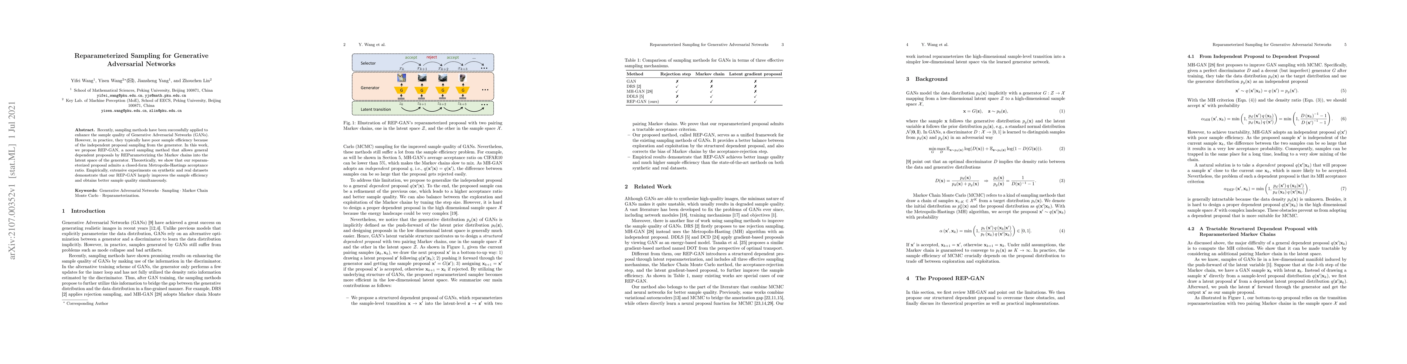 This paper introduces REP-GAN, a novel sampling method that enhances the efficiency of Generative Adversarial Networks (GANs) by reparameterizing Markov chains into the generator's latent space, allowing for dependent proposals. Empirical results show that REP-GAN significantly improves sample efficiency while maintaining high sample quality.