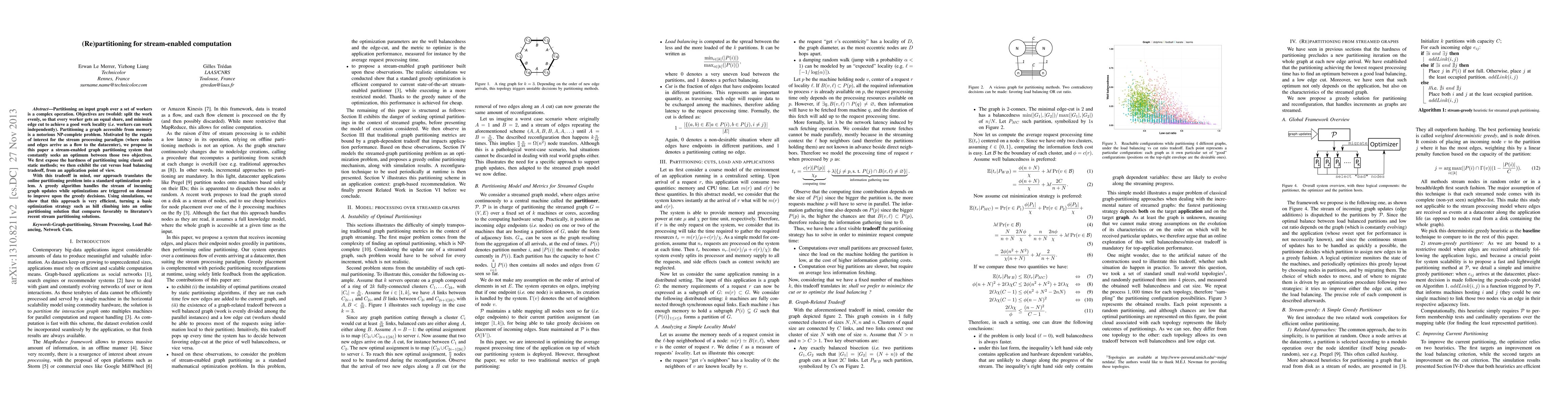 Partitioning an input graph over a set of workers is a complex operation. Objectives are twofold: split the work evenly, so that every worker gets an equal share, and minimize edge cut to achieve a good work locality (i.e. workers can work independently). Partitioning a graph accessible from memory is a notorious NP-complete problem. Motivated by the regain of interest for the stream processing paradigm (where nodes and edges arrive as a flow to the datacenter), we propose in this paper a stream-enabled graph partitioning system that constantly seeks an optimum between those two objectives. We first expose the hardness of partitioning using classic and static methods; we then exhibit the cut versus load balancing tradeoff, from an application point of view. With this tradeoff in mind, our approach translates the online partitioning problem into a standard optimization problem. A greedy algorithm handles the stream of incoming graph updates while optimizations are triggered on demand to improve upon the greedy decisions. Using simulations, we show that this approach is very efficient, turning a basic optimization strategy such as hill climbing into an online partitioning solution that compares favorably to literature's recent stream partitioning solutions.