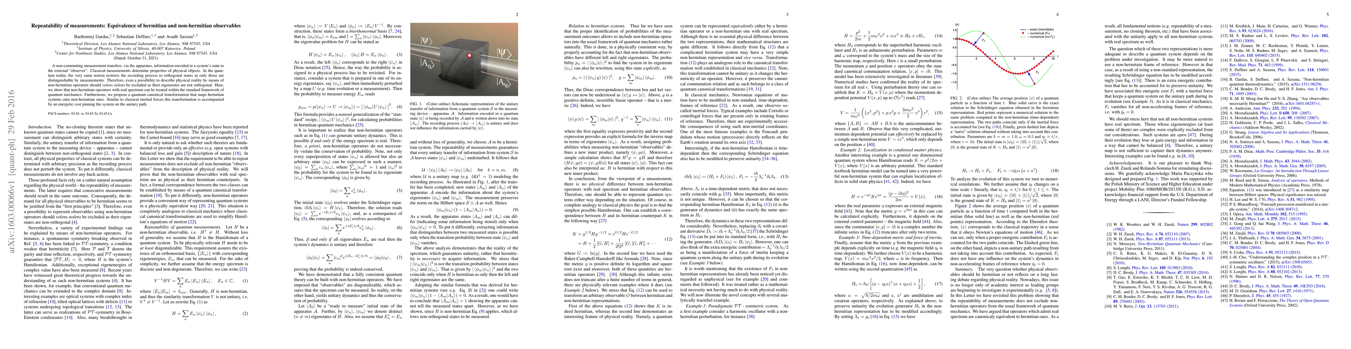 A non-commuting measurement transfers, via the apparatus, information encoded in a system's state to the external "observer". Classical measurements determine properties of physical objects. In the quantum realm, the very same notion restricts the recording process to orthogonal states as only those are distinguishable by measurements. Therefore, even a possibility to describe physical reality by means of non-hermitian operators should \emph{volens nolens} be excluded as their eigenstates are not orthogonal. Here, we show that non-hermitian operators with real spectrum can be treated within the standard framework of quantum mechanics. Furthermore, we propose a quantum canonical transformation that maps hermitian systems onto non-hermitian ones. Similar to classical inertial forces this transformation is accompanied by an energetic cost pinning the system on the unitary path.