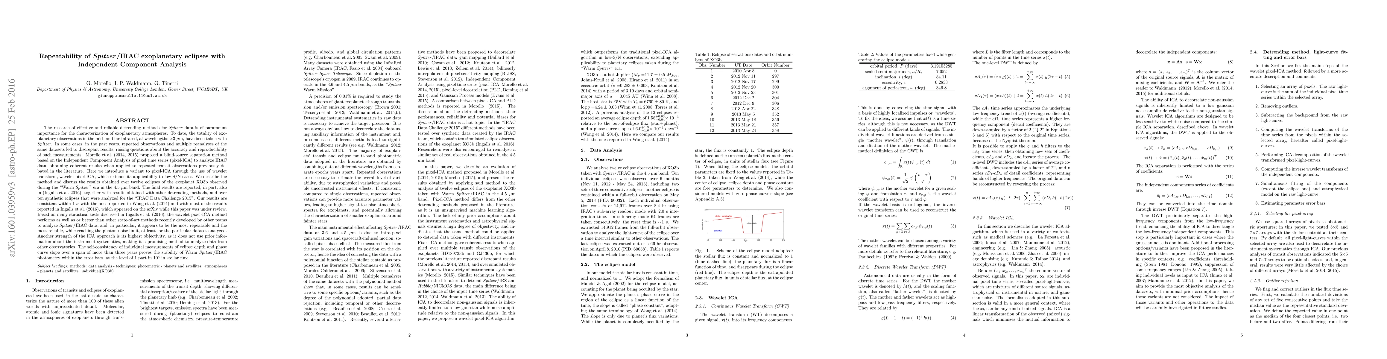 This paper investigates the repeatability of Spitzer/IRAC exoplanetary eclipse observations using a wavelet-enhanced Independent Component Analysis (wavelet pixel-ICA) method. The results from twelve eclipses of the exoplanet XO3b show consistent measurements within 1 $\sigma$, demonstrating the reliability and stability of Spitzer/IRAC data for exoplanet characterization.