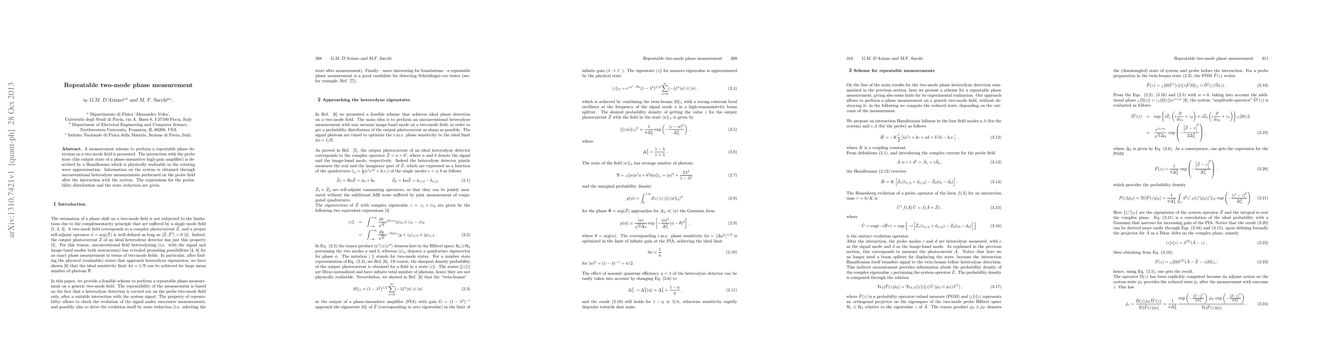 This paper introduces a method for repeatable phase detection in a two-mode field using a phase-insensitive high-gain amplifier and unconventional heterodyne measurements. The interaction is modeled by a physically realizable Hamiltonian in the rotating wave approximation, providing expressions for the probability distribution and state reduction.