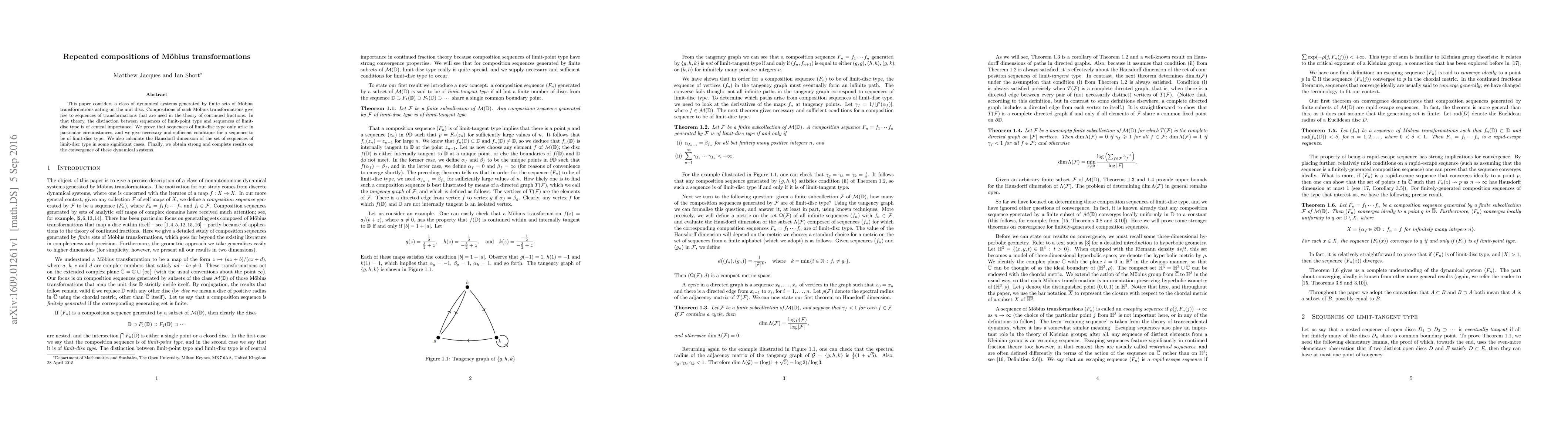 This paper investigates dynamical systems formed by compositions of Moebius transformations on the unit disc, focusing on sequences of transformations related to continued fractions. It establishes conditions for sequences to be of limit-disc type and computes their Hausdorff dimension, concluding with comprehensive results on the convergence of these systems.