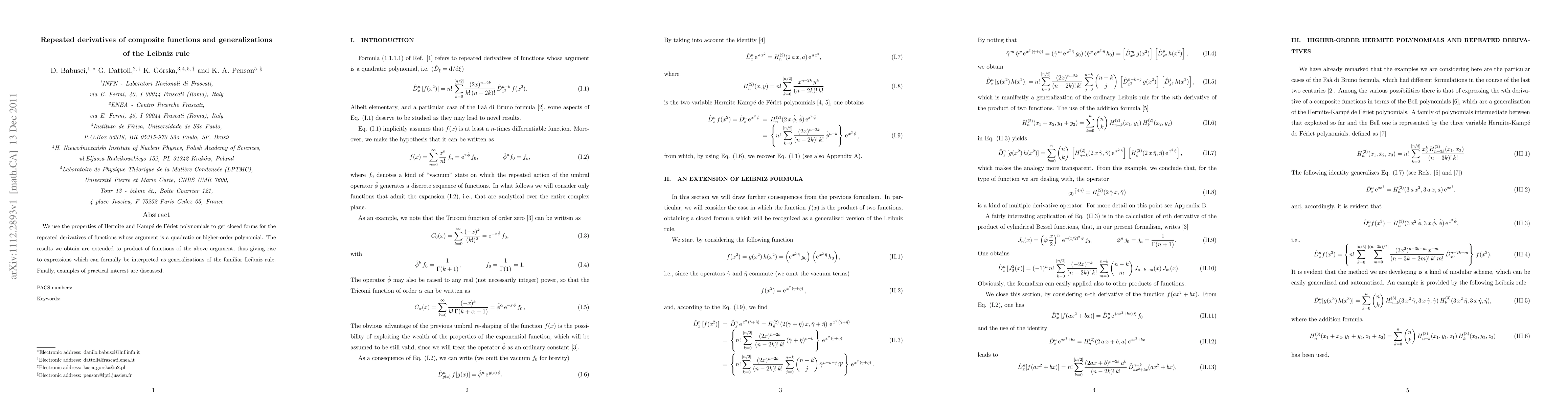 This paper derives closed forms for the repeated derivatives of composite functions with quadratic or higher-order polynomial arguments using Hermite and Kampé de Fériet polynomials, and extends these results to products of such functions, presenting generalizations of the Leibniz rule. Practical examples are also examined to illustrate the utility of these findings.