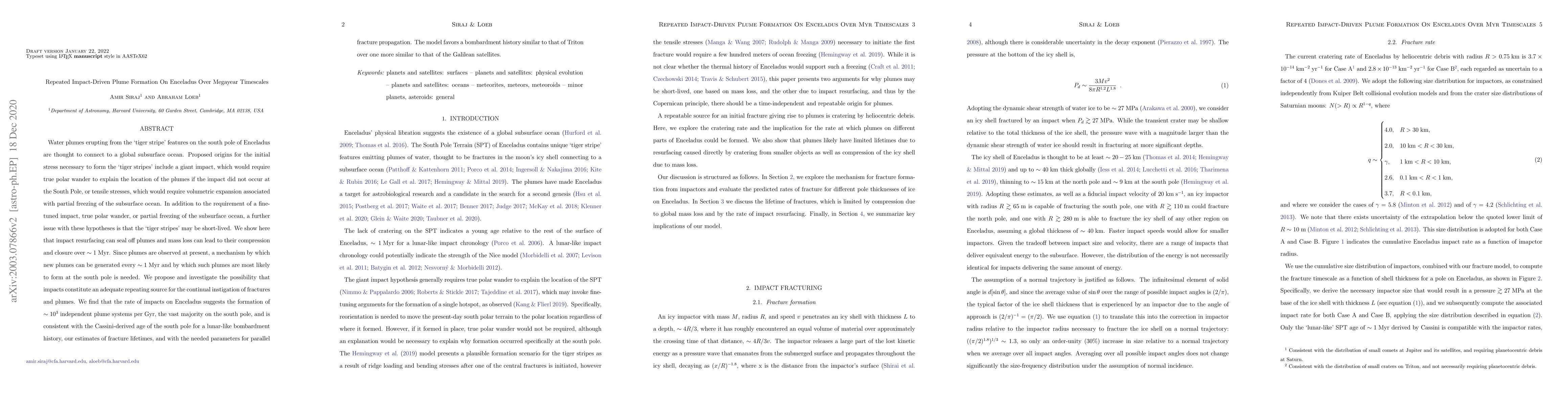 This paper investigates the continual formation of water plumes on Enceladus' south pole, proposing that repeated impacts over megayear timescales generate and maintain these plumes. It finds that impacts could create and propagate fractures, leading to the formation of thousands of plume systems per billion years, predominantly at the south pole, consistent with observed data and a bombardment history similar to Triton.