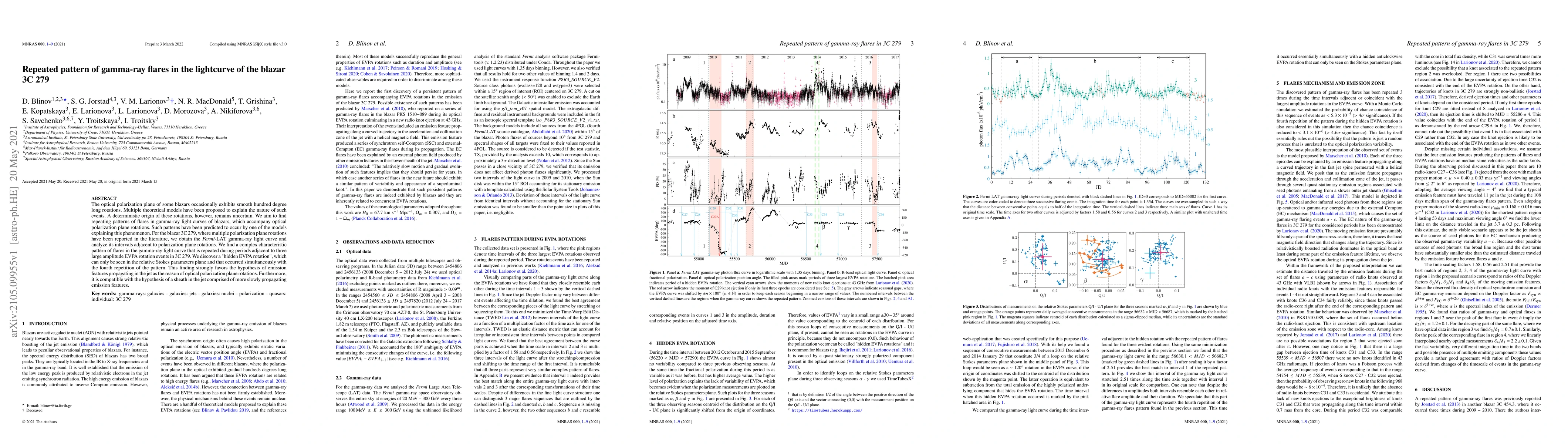 This study investigates the gamma-ray light curve of the blazar 3C 279, identifying a repeated pattern of flares accompanying optical polarization plane rotations. The findings support the model of emission features propagating in the jet as the cause of these rotations, revealing a "hidden EVPA rotation" that aligns with the proposed sheath hypothesis.