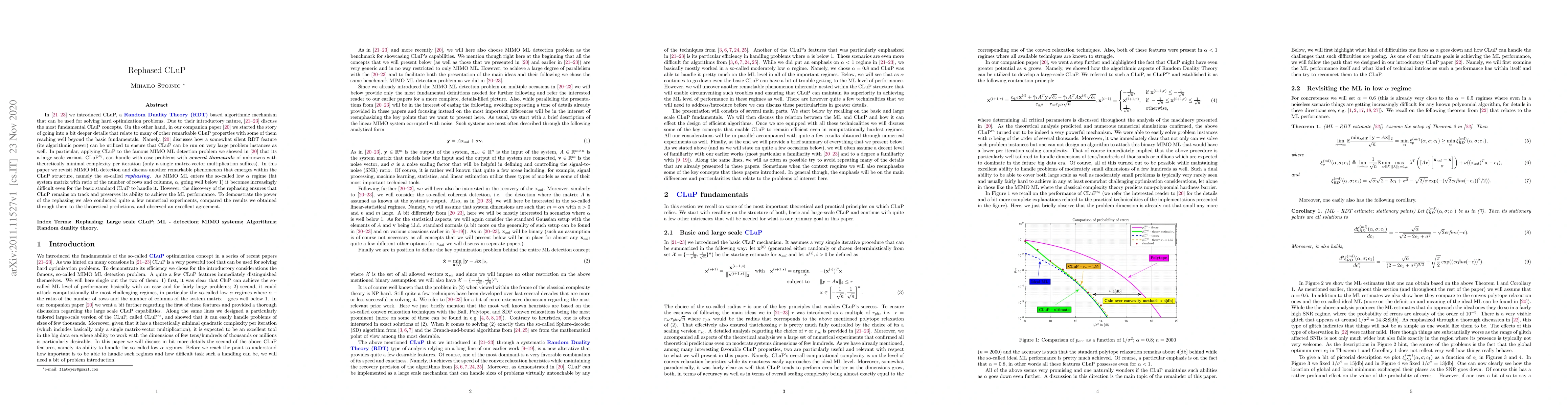 In \cite{Stojnicclupint19,Stojnicclupcmpl19,Stojnicclupplt19} we introduced CLuP, a \bl{\textbf{Random Duality Theory (RDT)}} based algorithmic mechanism that can be used for solving hard optimization problems. Due to their introductory nature, \cite{Stojnicclupint19,Stojnicclupcmpl19,Stojnicclupplt19} discuss the most fundamental CLuP concepts. On the other hand, in our companion paper \cite{Stojniccluplargesc20} we started the story of going into a bit deeper details that relate to many of other remarkable CLuP properties with some of them reaching well beyond the basic fundamentals. Namely, \cite{Stojniccluplargesc20} discusses how a somewhat silent RDT feature (its algorithmic power) can be utilized to ensure that CLuP can be run on very large problem instances as well. In particular, applying CLuP to the famous MIMO ML detection problem we showed in \cite{Stojniccluplargesc20} that its a large scale variant, $\text{CLuP}^{r_0}$, can handle with ease problems with \textbf{\emph{several thousands}} of unknowns with theoretically minimal complexity per iteration (only a single matrix-vector multiplication suffices). In this paper we revisit MIMO ML detection and discuss another remarkable phenomenon that emerges within the CLuP structure, namely the so-called \bl{\textbf{\emph{rephasing}}}. As MIMO ML enters the so-called low $\alpha$ regime (fat system matrix with ratio of the number of rows and columns, $\alpha$, going well below $1$) it becomes increasingly difficult even for the basic standard CLuP to handle it. However, the discovery of the rephasing ensures that CLuP remains on track and preserves its ability to achieve the ML performance. To demonstrate the power of the rephasing we also conducted quite a few numerical experiments, compared the results we obtained through them to the theoretical predictions, and observed an excellent agreement.