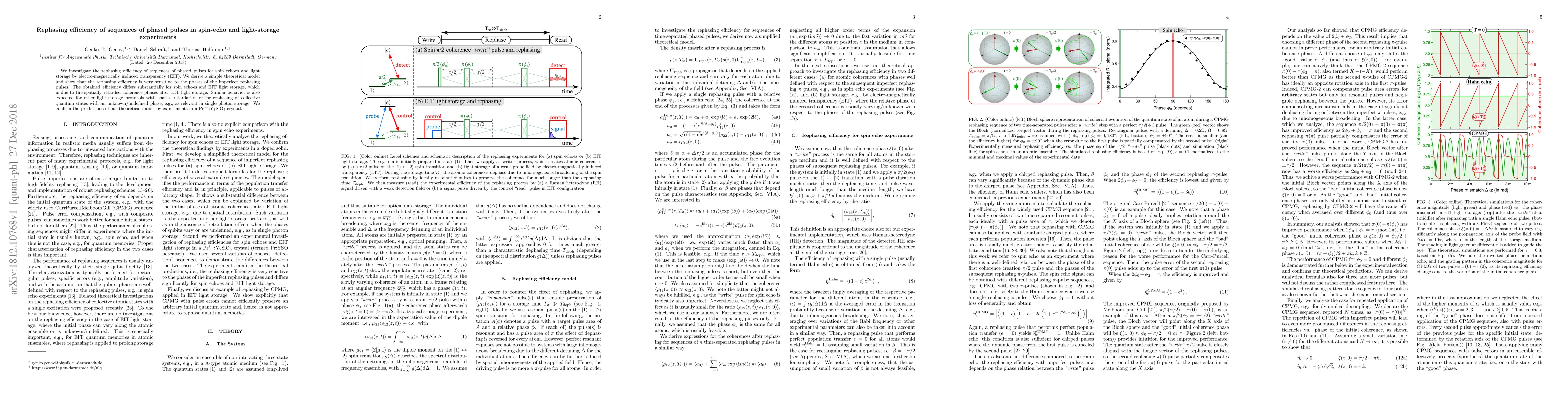 This paper investigates the rephasing efficiency of phased pulse sequences in spin echoes and light storage via electromagnetically induced transparency (EIT), revealing significant differences due to spatially retarded coherence phases in EIT. Experimental confirmation in a Pr$^{3+}$:Y$_{2}$SiO$_{5}$ crystal supports the theoretical model.