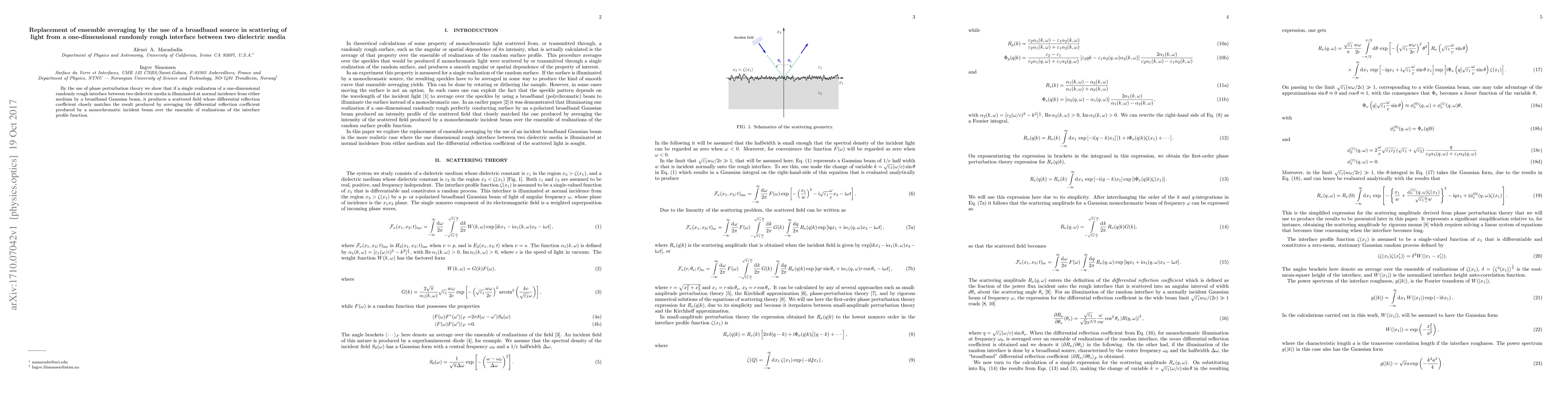By the use of phase perturbation theory we show that if a single realization of a one-dimensional randomly rough interface between two dielectric media is illuminated at normal incidence from either medium by a broadband Gaussian beam, it produces a scattered field whose differential reflection coefficient closely matches the result produced by averaging the differential reflection coefficient produced by a monochromatic incident beam over the ensemble of realizations of the interface profile function.