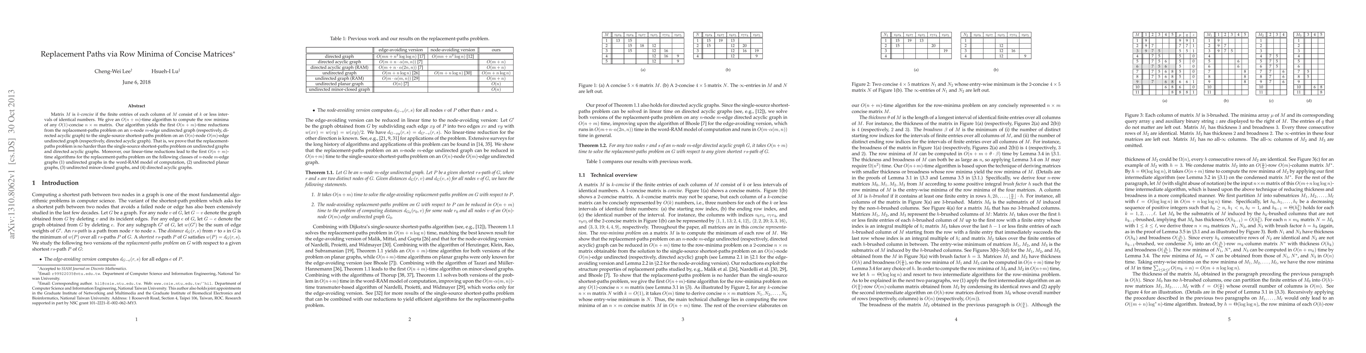 The development of an efficient algorithm for row minima computation in concise matrices and its application to replacement-paths problem reductions.