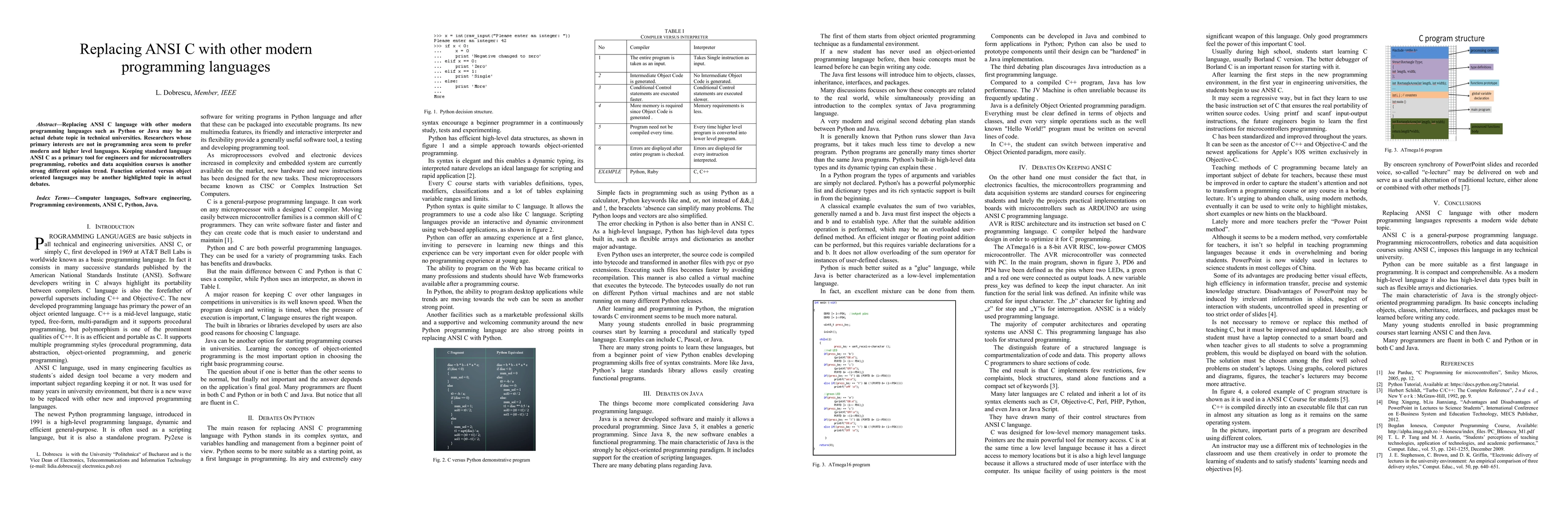 Two-line summary: This paper discusses the debate surrounding the replacement of ANSI C with modern programming languages like Python or Java in technical education, highlighting the preference for higher-level languages among non-programming researchers and the strong support for maintaining ANSI C in engineering and microcontroller programming courses. The discussion also touches on the function-oriented versus object-oriented language debate.