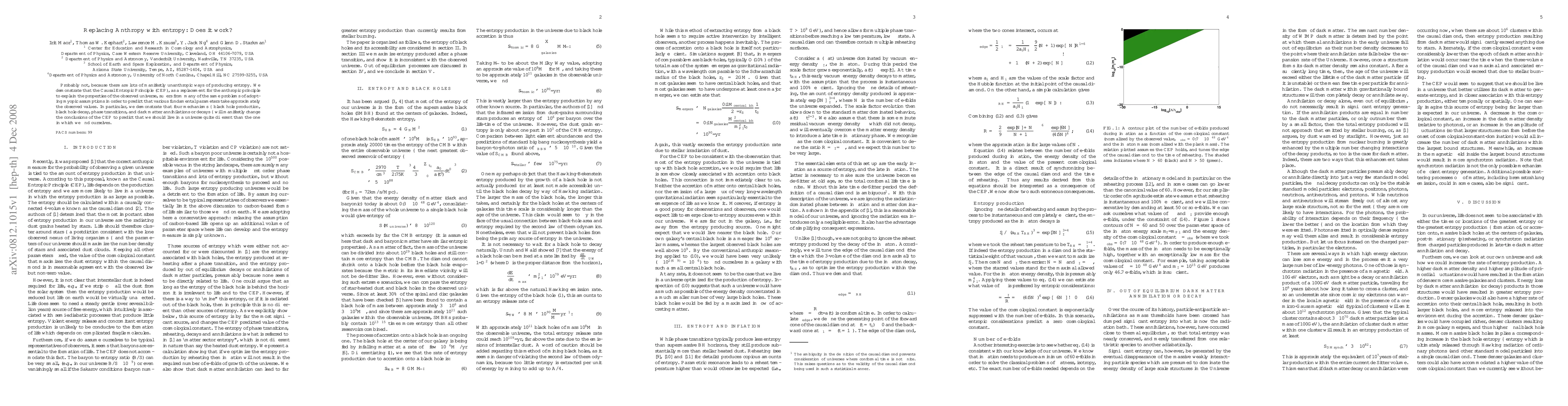 The paper critically examines the Causal Entropic Principle (CEP) as a replacement for the anthropic principle, focusing on entropy production mechanisms such as black hole production, decay, phase transitions, and dark matter annihilations or decays.
