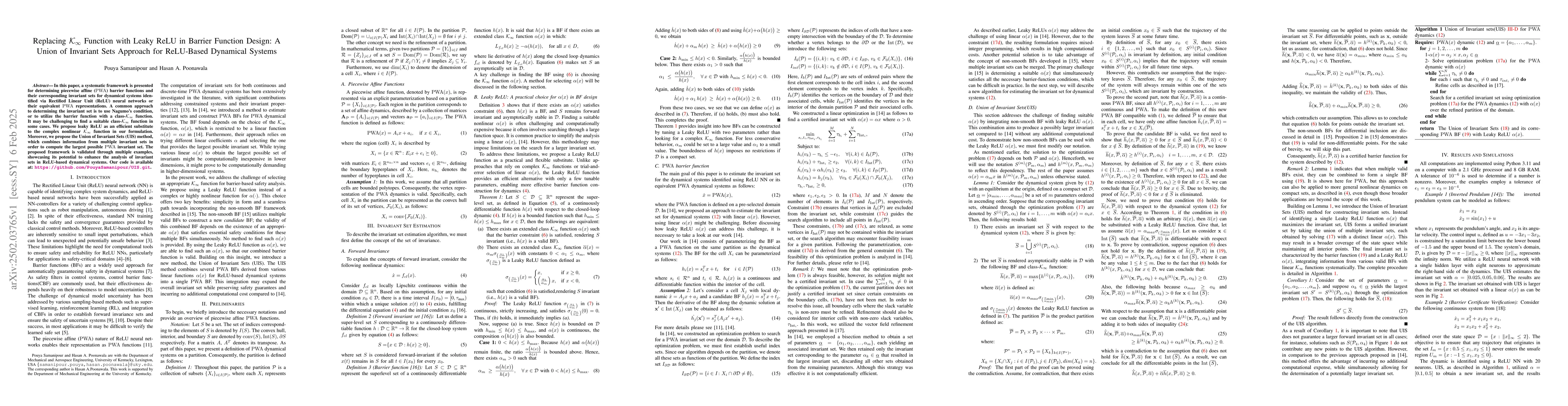 The paper presents a systematic framework for determining piecewise affine (PWA) barrier functions and their corresponding invariant sets for dynamical systems identified via Rectified Linear Unit (ReLU) neural networks or their equivalent PWA representations. It introduces the Union of Invariant Sets (UIS) method to compute the largest possible PWA invariant set by combining information from multiple invariant sets.