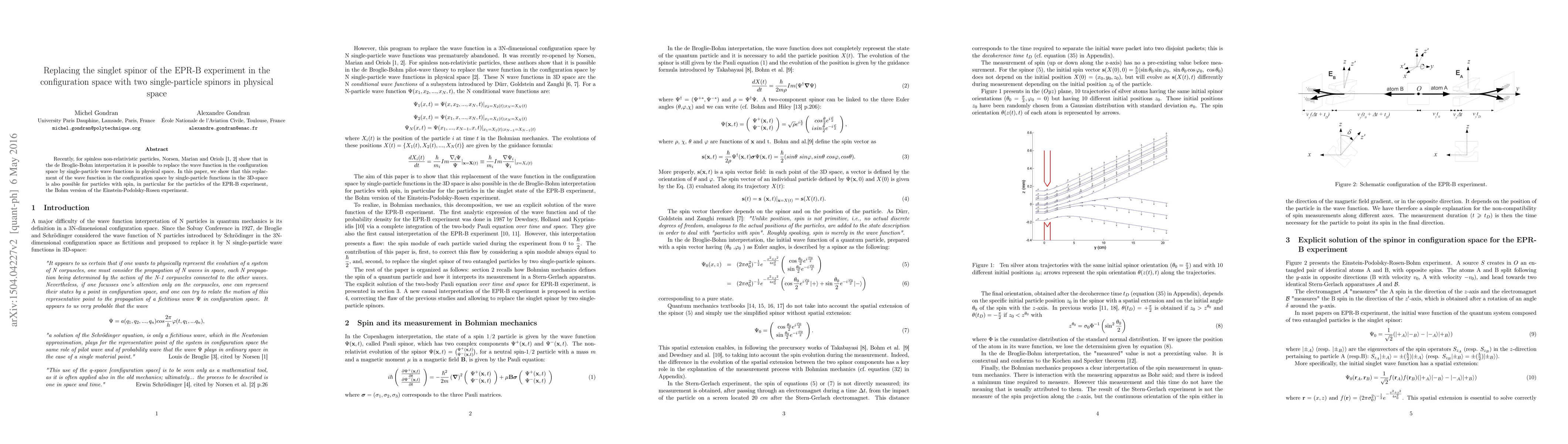 This paper demonstrates that in the de Broglie-Bohm interpretation, the wave function in configuration space for spinless particles can be replaced by single-particle wave functions in 3D space. The authors extend this concept to particles with spin, specifically in the context of the Bohm version of the EPR-B experiment.