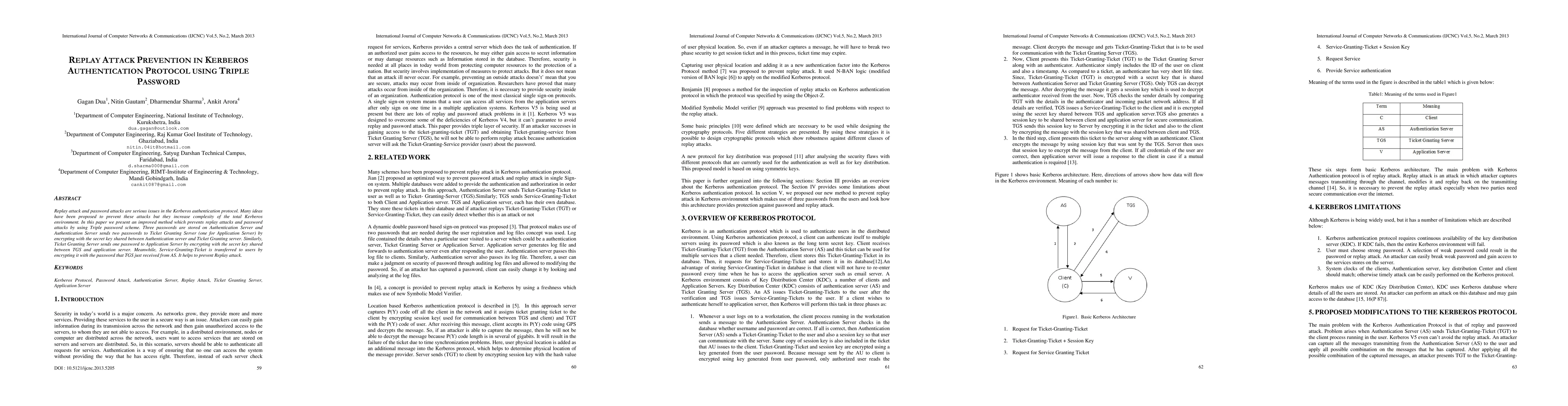 This paper proposes a Triple password scheme to prevent replay attacks and password attacks in the Kerberos authentication protocol, enhancing security without increasing overall complexity. The method involves the Authentication Server storing three passwords and selectively encrypting and sharing them with the Ticket Granting Server and Application Server to thwart replay attacks.