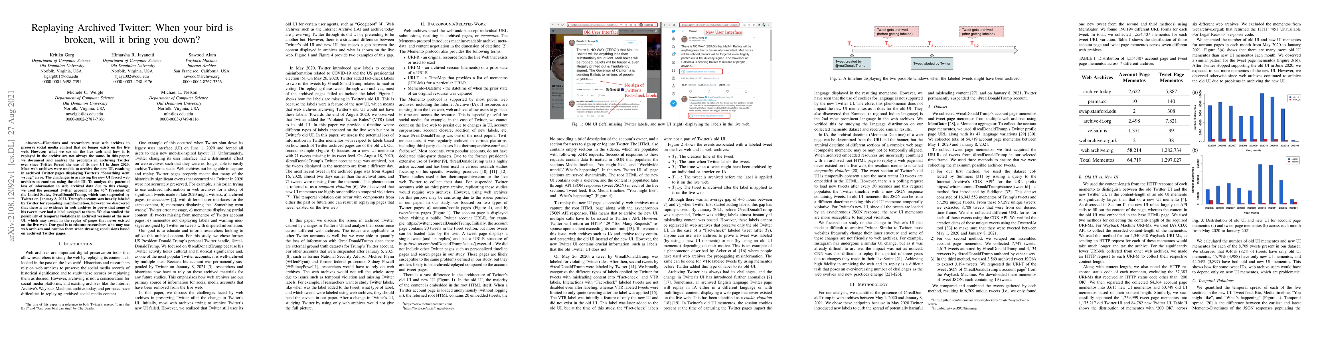 This research investigates the challenges in archiving Twitter's new UI, highlighting how web archives struggled to capture this change, often reverting to old UIs. It reveals significant information loss, exemplified by the absence of misinformation labels on archived tweets from @realDonaldTrump, and warns researchers of potential temporal violations in archived data.