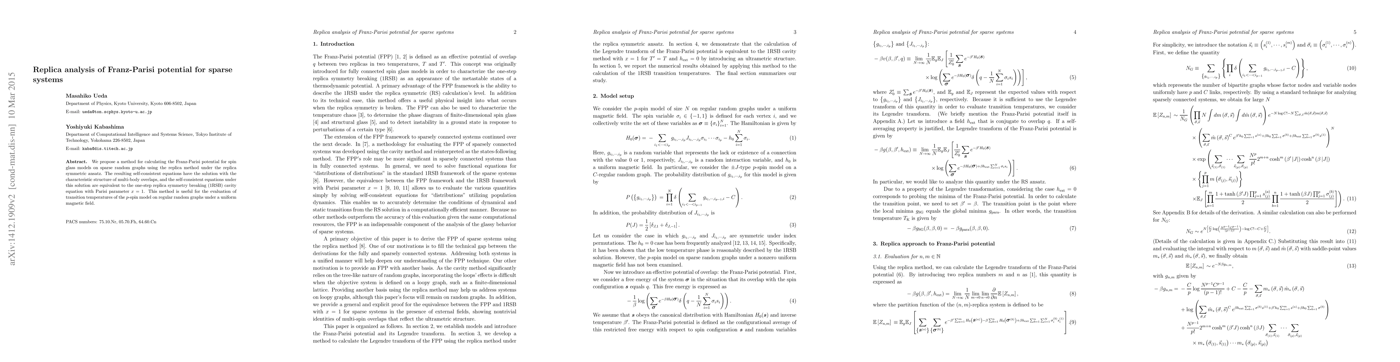 This paper proposes a replica method to calculate the Franz-Parisi potential for sparse spin glass models, showing equivalence to the 1RSB cavity equation with $x=1$ and providing a tool for evaluating transition temperatures in $p$-spin models on random graphs.