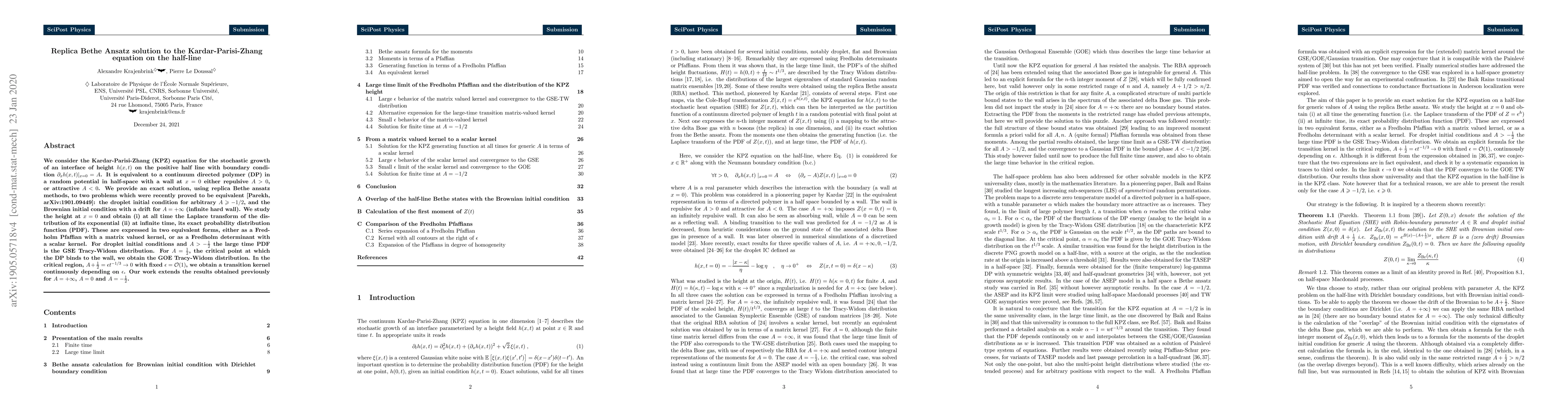 We consider the Kardar-Parisi-Zhang (KPZ) equation for the stochastic growth of an interface of height $h(x,t)$ on the positive half line with boundary condition $\partial_x h(x,t)|_{x=0}=A$. It is equivalent to a continuum directed polymer (DP) in a random potential in half-space with a wall at $x=0$ either repulsive $A>0$, or attractive $A<0$. We provide an exact solution, using replica Bethe ansatz methods, to two problems which were recently proved to be equivalent [Parekh, arXiv:1901.09449]: the droplet initial condition for arbitrary $A \geqslant -1/2$, and the Brownian initial condition with a drift for $A=+\infty$ (infinite hard wall). We study the height at $x=0$ and obtain (i) at all time the Laplace transform of the distribution of its exponential (ii) at infinite time, its exact probability distribution function (PDF). These are expressed in two equivalent forms, either as a Fredholm Pfaffian with a matrix valued kernel, or as a Fredholm determinant with a scalar kernel. For droplet initial conditions and $A> - \frac{1}{2}$ the large time PDF is the GSE Tracy-Widom distribution. For $A= \frac{1}{2}$, the critical point at which the DP binds to the wall, we obtain the GOE Tracy-Widom distribution. In the critical region, $A+\frac{1}{2} = \epsilon t^{-1/3} \to 0$ with fixed $\epsilon = \mathcal{O}(1)$, we obtain a transition kernel continuously depending on $\epsilon$. Our work extends the results obtained previously for $A=+\infty$, $A=0$ and $A=- \frac{1}{2}$.