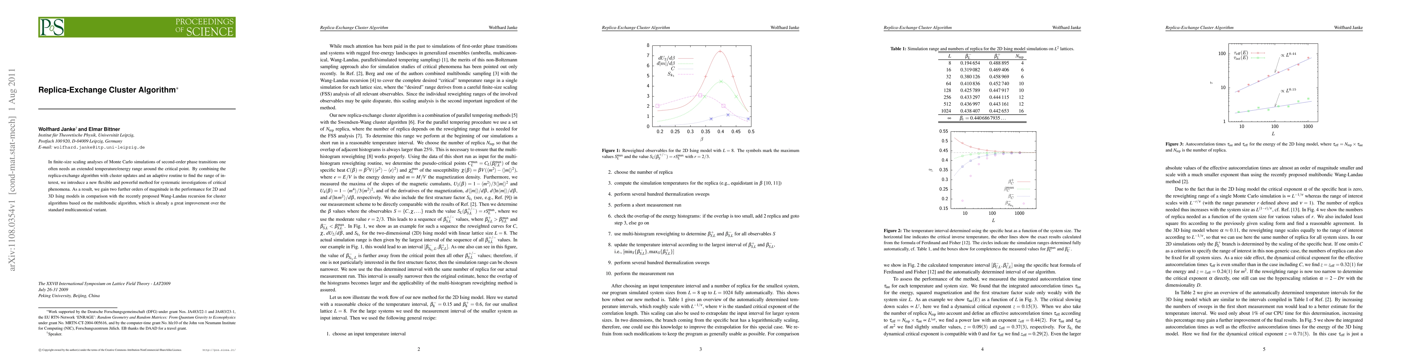 The paper introduces a replica-exchange cluster algorithm combined with adaptive routines to enhance Monte Carlo simulations for second-order phase transitions, achieving two orders of magnitude better performance than the Wang-Landau recursion method for 2D and 3D Ising models. This new approach provides a powerful tool for studying critical phenomena.