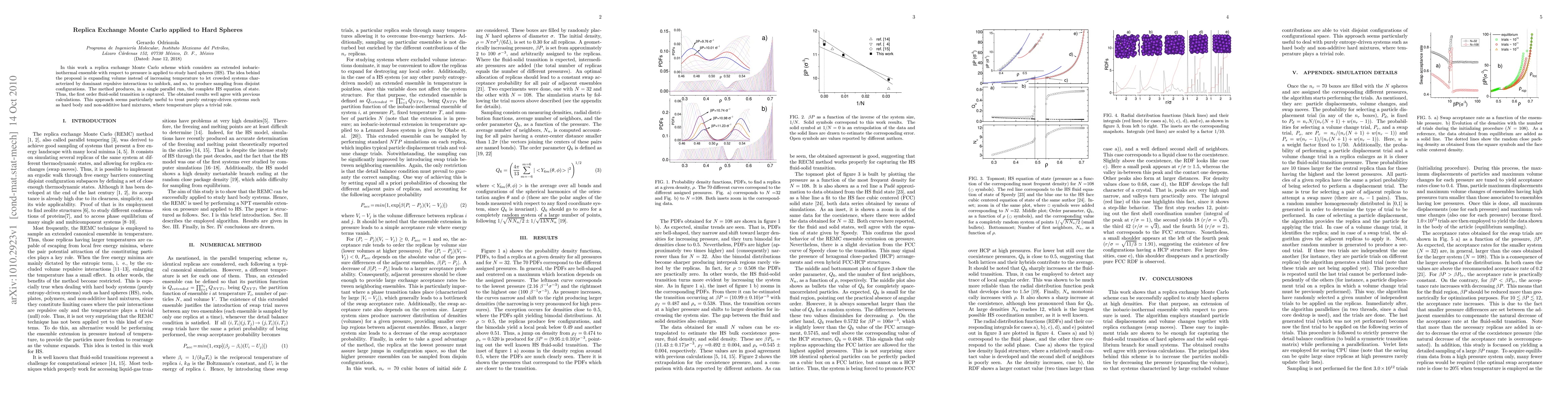 Researchers applied a replica exchange Monte Carlo scheme to study hard spheres, capturing the first order fluid-solid transition and producing accurate results that agree with previous calculations. This approach is useful for treating entropy-driven systems where temperature plays a trivial role.