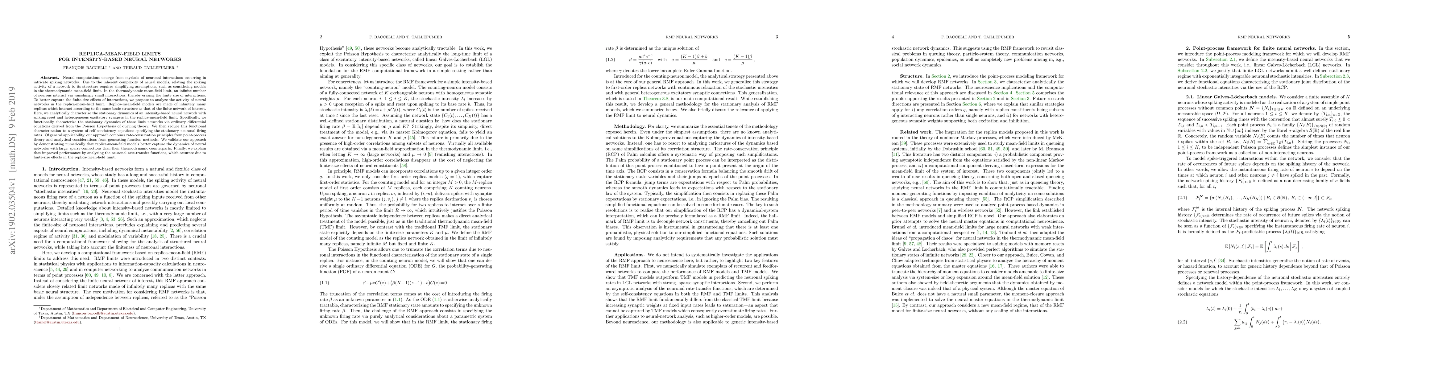 This paper proposes an analytical framework for studying the dynamics of intensity-based neural networks using the replica-mean-field limit, which better captures finite-size effects compared to the thermodynamic mean-field limit. The authors derive ordinary differential equations to characterize the stationary dynamics and validate their approach by showing improved accuracy in modeling large, sparse networks.