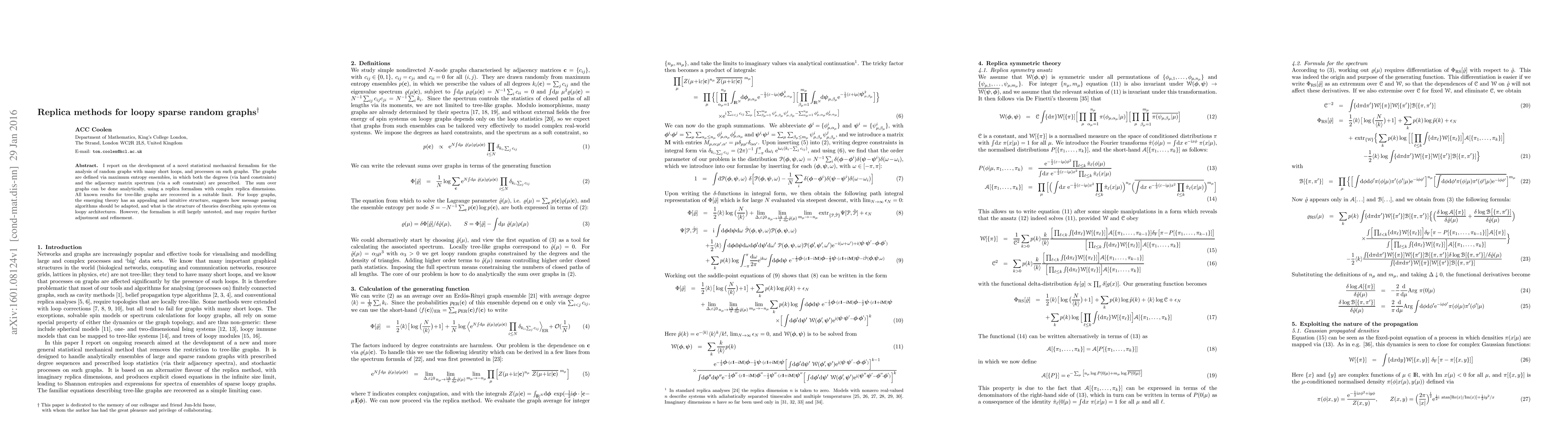 I report on the development of a novel statistical mechanical formalism for the analysis of random graphs with many short loops, and processes on such graphs. The graphs are defined via maximum entropy ensembles, in which both the degrees (via hard constraints) and the adjacency matrix spectrum (via a soft constraint) are prescribed. The sum over graphs can be done analytically, using a replica formalism with complex replica dimensions. All known results for tree-like graphs are recovered in a suitable limit. For loopy graphs, the emerging theory has an appealing and intuitive structure, suggests how message passing algorithms should be adapted, and what is the structure of theories describing spin systems on loopy architectures. However, the formalism is still largely untested, and may require further adjustment and refinement.