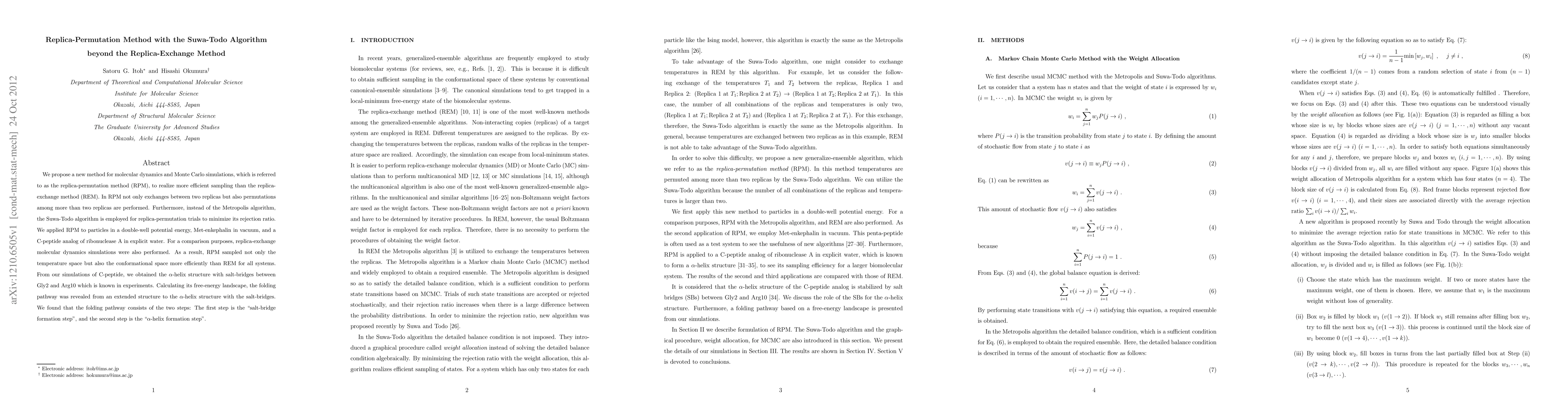 The paper proposes the replica-permutation method (RPM) for more efficient sampling in molecular dynamics simulations compared to the replica-exchange method (REM). RPM employs the Suwa-Todo algorithm instead of the Metropolis algorithm to minimize rejection ratios and allows for permutations among more than two replicas.