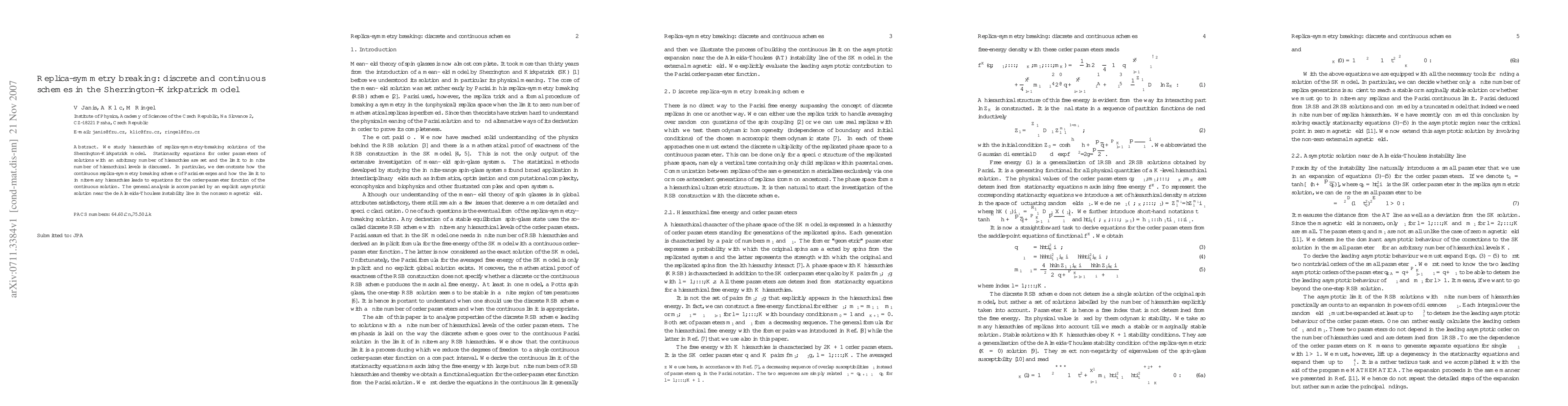 This paper investigates replica-symmetry-breaking hierarchies in the Sherrington-Kirkpatrick model, deriving stationarity equations for order parameters and demonstrating the emergence of Parisi's continuous replica-symmetry breaking scheme as the number of hierarchies approaches infinity. An explicit asymptotic solution is provided near the de Almeida-Thouless instability line in a nonzero magnetic field.