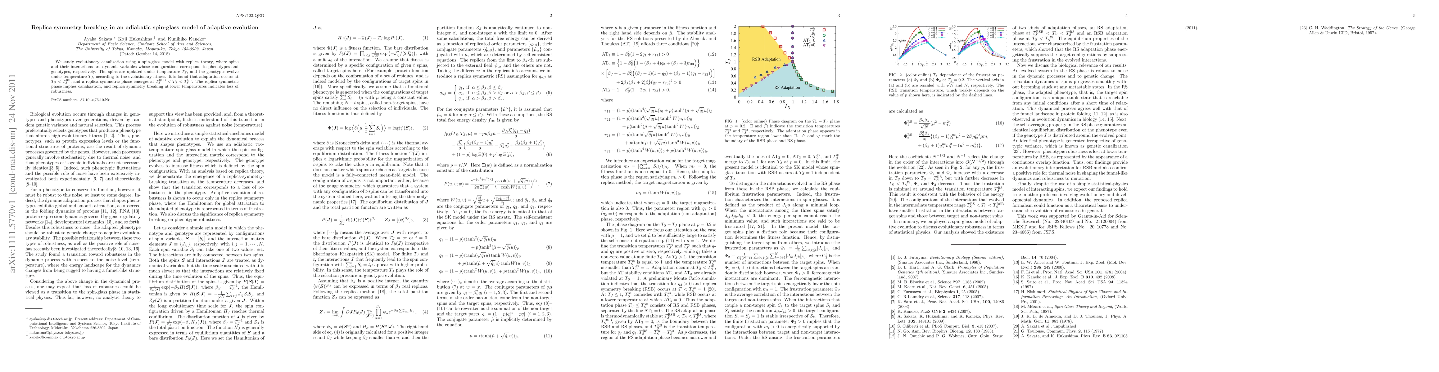 This paper investigates evolutionary canalization using a dynamic spin-glass model with replica theory, finding that adaptation occurs below a critical temperature T_S^{RS}. Replica symmetry breaking at lower temperatures indicates a loss of robustness, while a replica symmetric phase at intermediate temperatures signifies canalization.