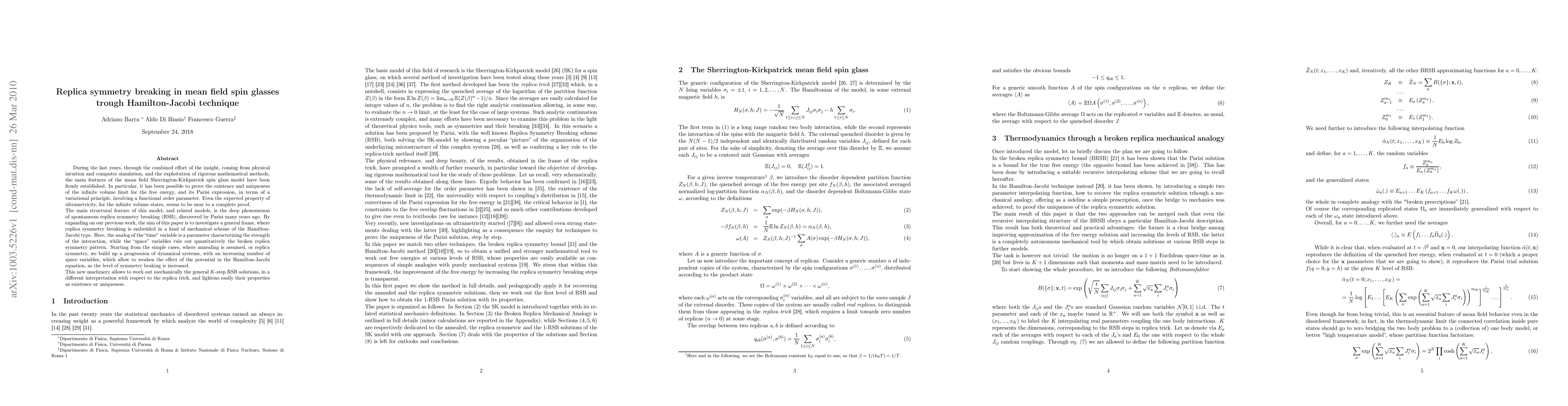 This paper investigates replica symmetry breaking in mean field spin glasses using a Hamilton-Jacobi technique, exploring its mechanical framework and general K-step solutions with varying levels of symmetry breaking.