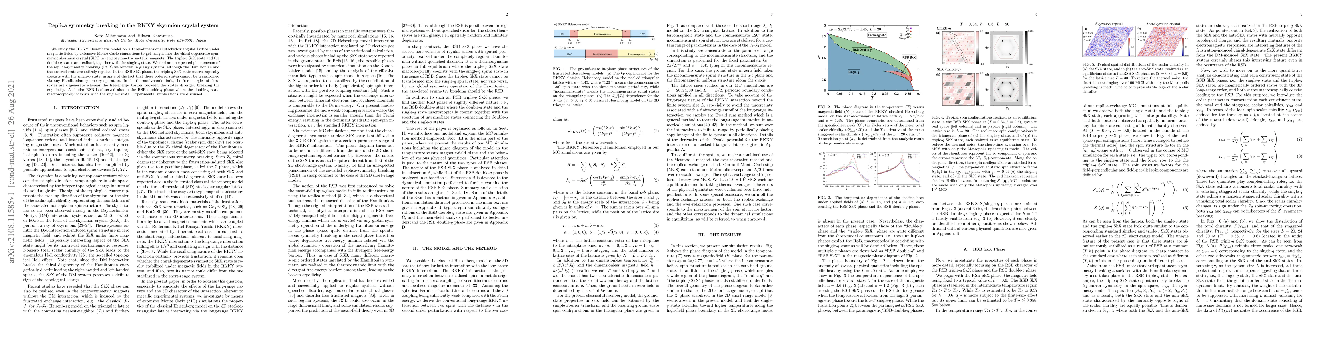 This paper investigates the RKKY Heisenberg model on a three-dimensional lattice under magnetic fields, revealing replica-symmetry breaking (RSB) in the chiral-degenerate skyrmion crystal phase. The study shows macroscopic coexistence of different SkX states, despite their non-transformability, indicating a breakdown of ergodicity in the thermodynamic limit.