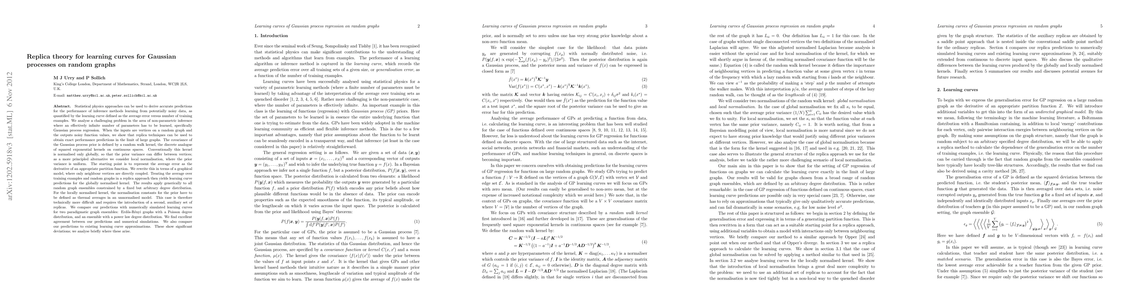 Statistical physics approaches can be used to derive accurate predictions for the performance of inference methods learning from potentially noisy data, as quantified by the learning curve defined as the average error versus number of training examples. We analyse a challenging problem in the area of non-parametric inference where an effectively infinite number of parameters has to be learned, specifically Gaussian process regression. When the inputs are vertices on a random graph and the outputs noisy function values, we show that replica techniques can be used to obtain exact performance predictions in the limit of large graphs. The covariance of the Gaussian process prior is defined by a random walk kernel, the discrete analogue of squared exponential kernels on continuous spaces. Conventionally this kernel is normalised only globally, so that the prior variance can differ between vertices; as a more principled alternative we consider local normalisation, where the prior variance is uniform.