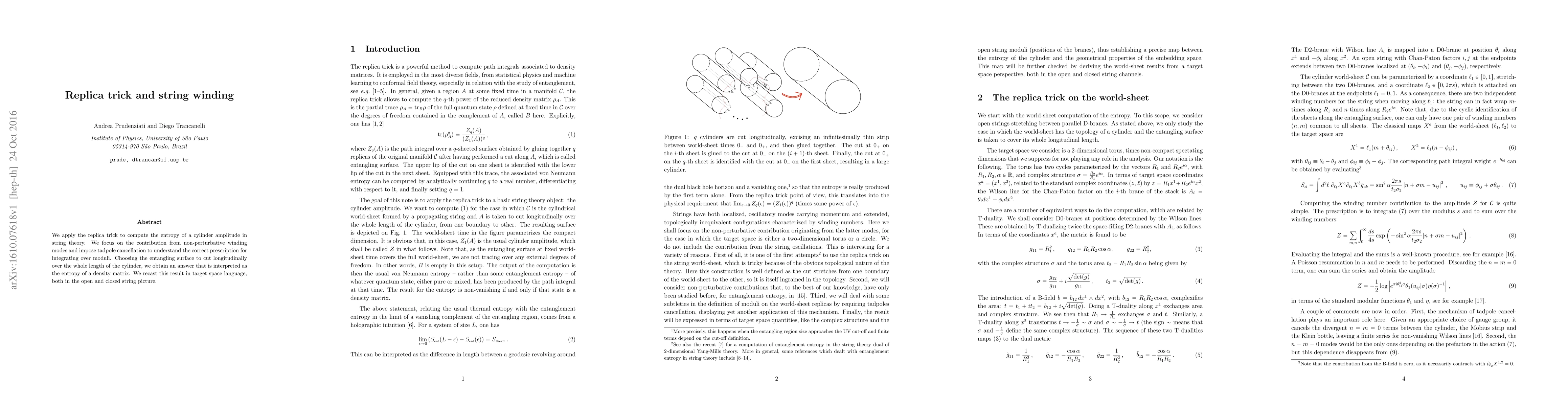Researchers apply the replica trick to compute entropy in string theory, finding a relation between string theory and density matrix concepts.