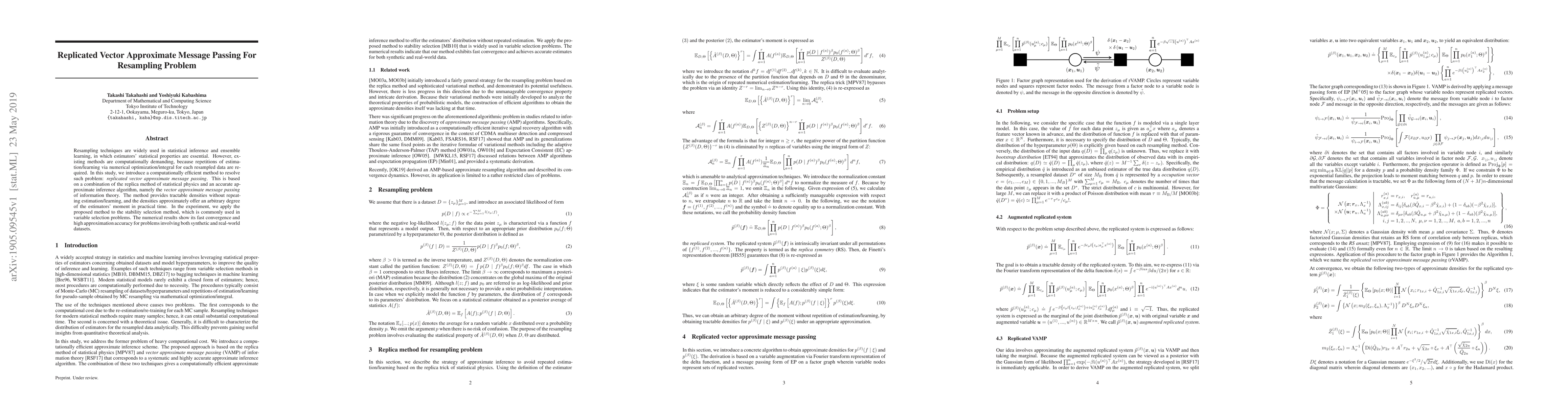 This paper proposes a computationally efficient replicated vector approximate message passing method to tackle resampling problems in statistical inference and ensemble learning, combining the replica method with vector approximate message passing for accurate estimation without repetitive learning. Experimental results demonstrate its rapid convergence and high approximation accuracy on both synthetic and real datasets.