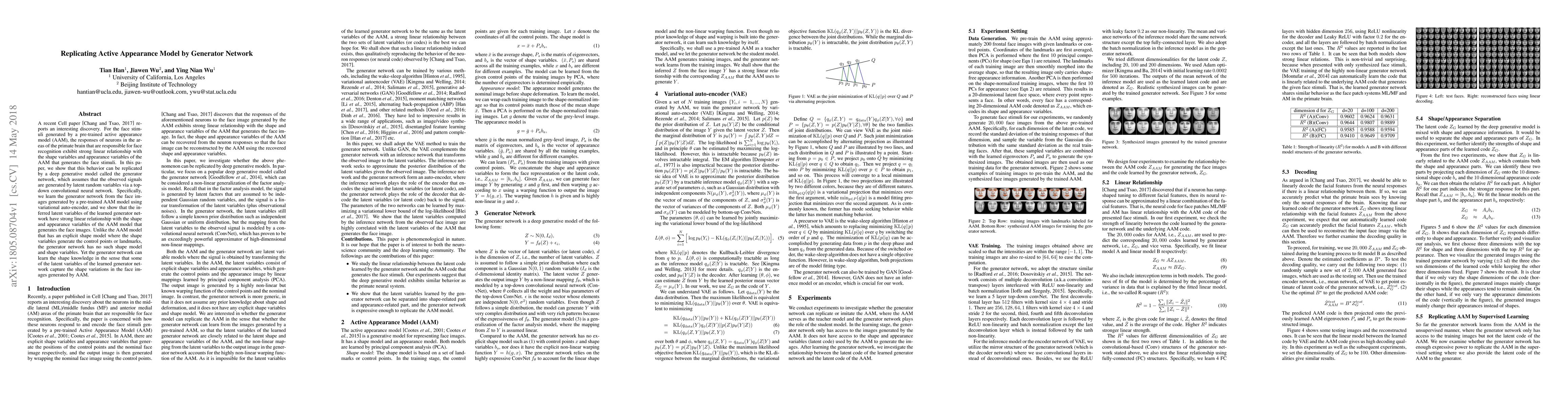 A recent Cell paper [Chang and Tsao, 2017] reports an interesting discovery. For the face stimuli generated by a pre-trained active appearance model (AAM), the responses of neurons in the areas of the primate brain that are responsible for face recognition exhibit strong linear relationship with the shape variables and appearance variables of the AAM that generates the face stimuli. In this paper, we show that this behavior can be replicated by a deep generative model called the generator network, which assumes that the observed signals are generated by latent random variables via a top-down convolutional neural network. Specifically, we learn the generator network from the face images generated by a pre-trained AAM model using variational auto-encoder, and we show that the inferred latent variables of the learned generator network have strong linear relationship with the shape and appearance variables of the AAM model that generates the face images. Unlike the AAM model that has an explicit shape model where the shape variables generate the control points or landmarks, the generator network has no such shape model and shape variables. Yet the generator network can learn the shape knowledge in the sense that some of the latent variables of the learned generator network capture the shape variations in the face images generated by AAM.
