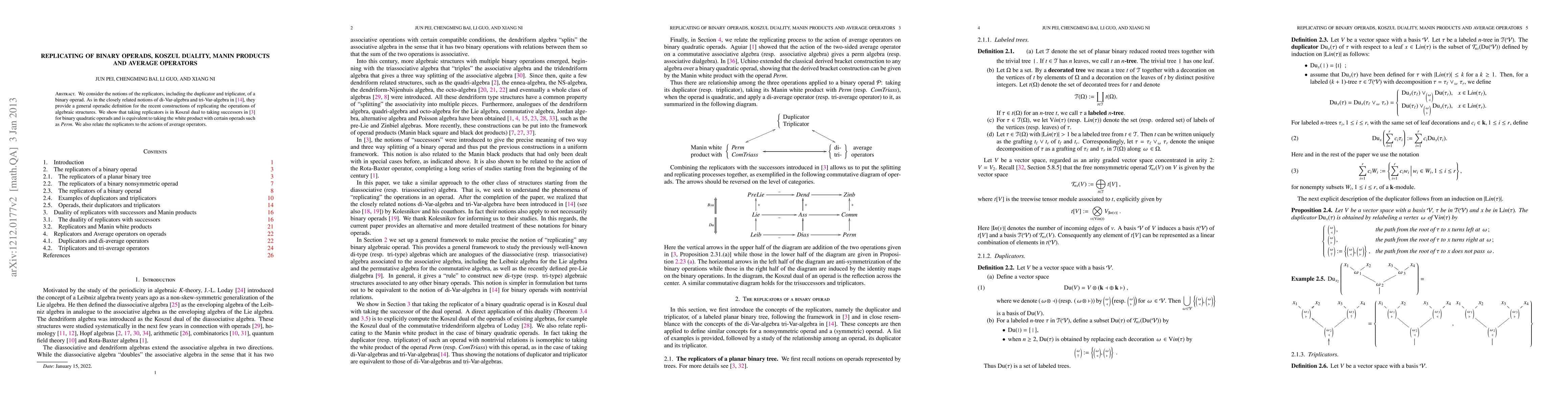 We consider the notions of the replicators, including the duplicator and triplicator, of a binary operad. As in the closely related notions of di-Var-algebra and tri-Var-algebra in [14], they provide a general operadic definition for the recent constructions of replicating the operations of algebraic structures. We show that taking replicators is in Koszul dual to taking successors in [3] for binary quadratic operads and is equivalent to taking the white product with certain operads such as Perm. We also relate the replicators to the actions of average operators.