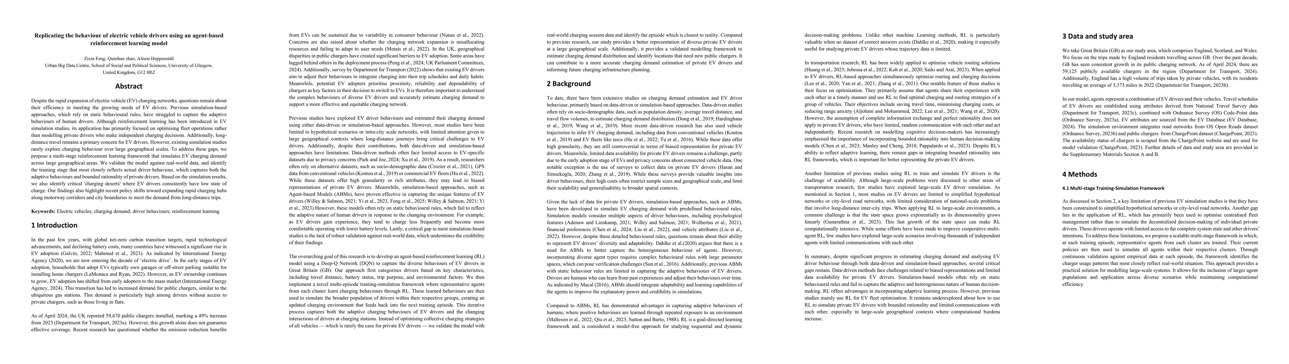 Unlike previous studies focusing on optimizing EV fleet operations, this research applies RL to model the adaptive learning process of private EV drivers independently making charging decisions.