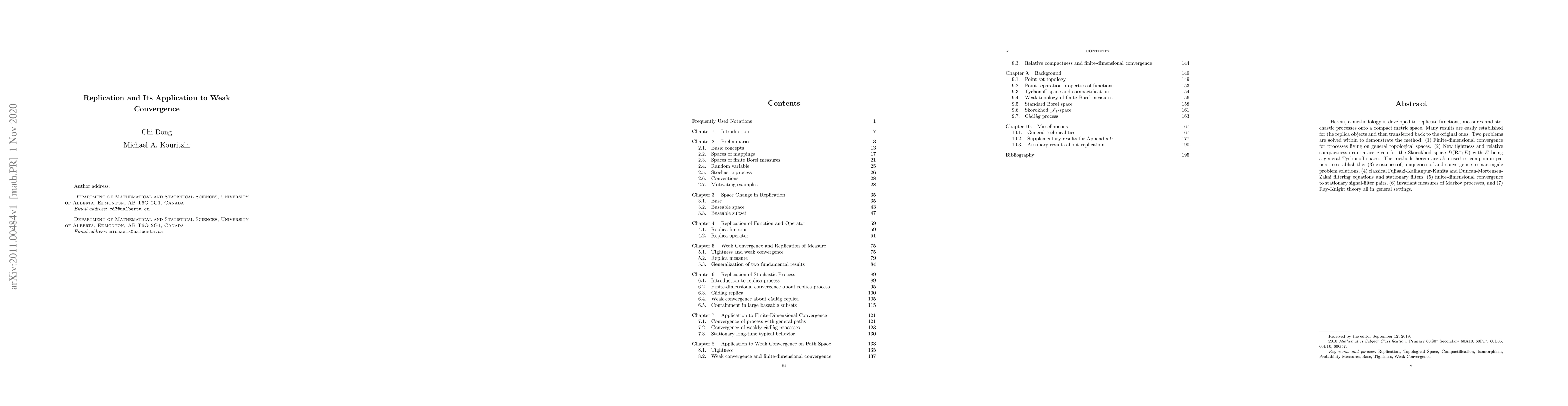 Herein, a methodology is developed to replicate functions, measures and stochastic processes onto a compact metric space. Many results are easily established for the replica objects and then transferred back to the original ones. Two problems are solved within to demonstrate the method: (1) Finite-dimensional convergence for processes living on general topological spaces. (2) New tightness and relative compactness criteria are given for the Skorokhod space $D(\mathbf{R}^{+};E)$ with $E$ being a general Tychonoff space. The methods herein are also used in companion papers to establish the: (3) existence of, uniqueness of and convergence to martingale problem solutions, (4) classical Fujisaki-Kallianpur-Kunita and Duncan-Mortensen-Zakai filtering equations and stationary filters, (5) finite-dimensional convergence to stationary signal-filter pairs, (6) invariant measures of Markov processes, and (7) Ray-Knight theory all in general settings.
