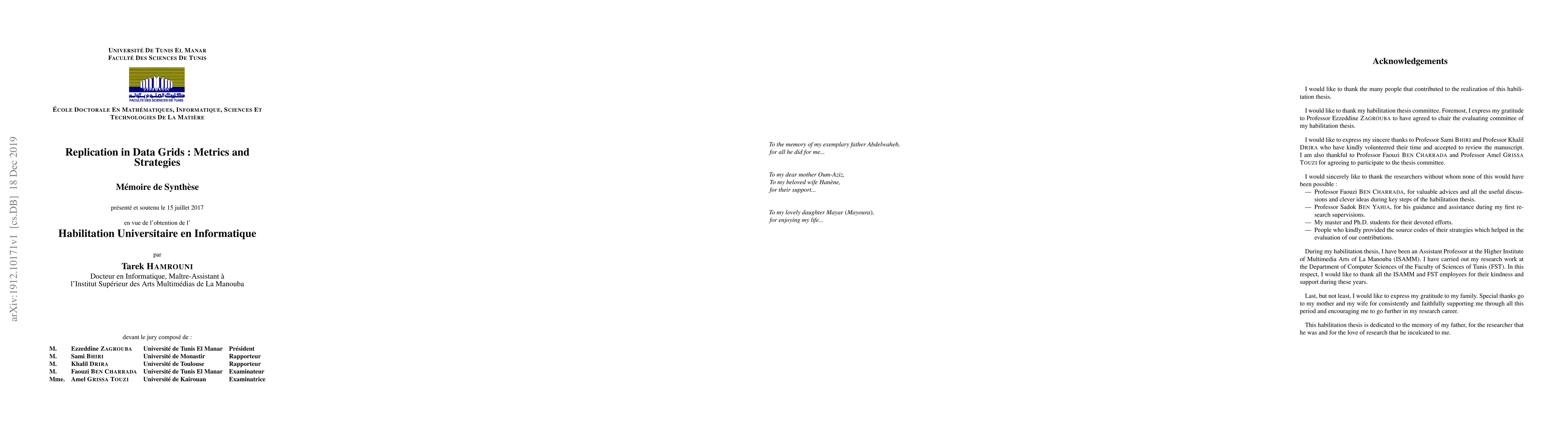 We focus in this report on two main axes. The first is dedicated to the study of the effect of replicas distribution on data grid performances. In this respect, our main contributions are as follows: 1) An overview of replication strategies mainly from the viewpoints of the considered parameters in their associated steps as well as the used metrics in the literature for their evaluation. 2) A study of the impact of placement strategies on data grid performance which motivated the analysis of the effect of the replicas distribution quality on the performance results of replication strategies. 3) The proposal of new evaluation metrics dedicated to the evaluation of the distribution quality. 4) The setting of an objective evaluation of replication strategies which is based on a beforehand assessment of the distribution quality. The second axis is mainly dedicated to exploiting results of data mining techniques to enhance performances of replication strategies. With respect to this axis, we mainly concentrate on the following contributions listed below: 1) The study of the strengths and the drawbacks of the main replication strategies based on data mining techniques and how these latter are applied in this context. 2) The proposal of a new guideline to data mining application in the context of data grid replication strategies. 3) The proposal of a new algorithm for mining maximal frequent correlated patterns. The input of this algorithm is obtained through a preliminary step focusing on how to adapt the required grid concepts to the data mining algorithm. 4) The design and the implementation of a new replication strategy based on a data mining technique, and more precisely correlated patterns.
