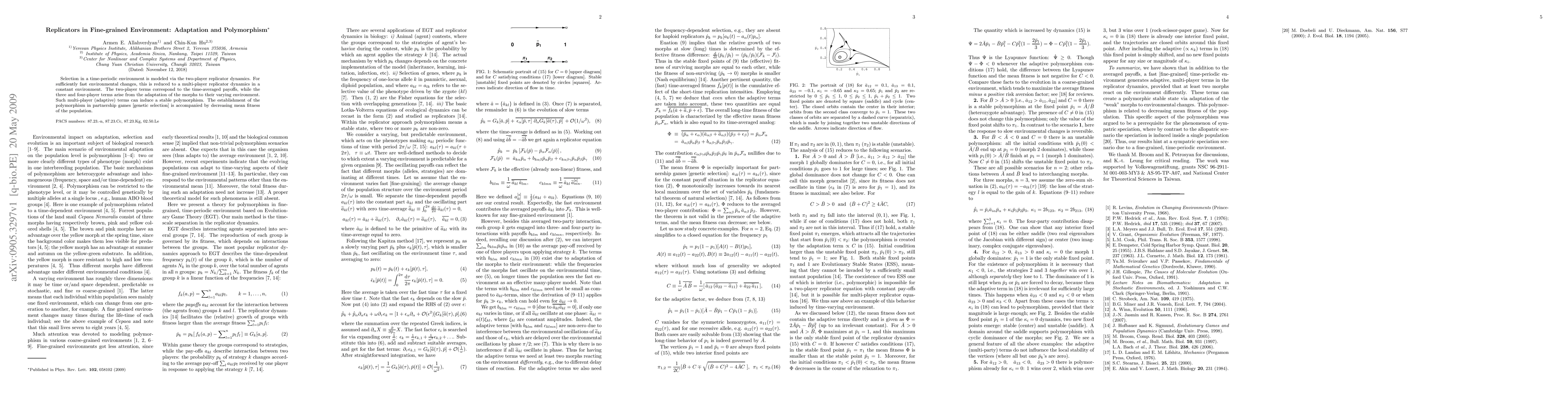 Selection in a time-periodic environment is modeled via the two-player replicator dynamics. For sufficiently fast environmental changes, this is reduced to a multi-player replicator dynamics in a constant environment. The two-player terms correspond to the time-averaged payoffs, while the three and four-player terms arise from the adaptation of the morphs to their varying environment. Such multi-player (adaptive) terms can induce a stable polymorphism. The establishment of the polymorphism in partnership games [genetic selection] is accompanied by decreasing mean fitness of the population.